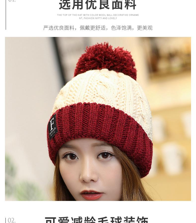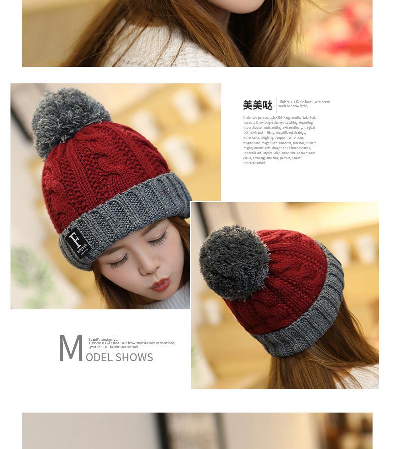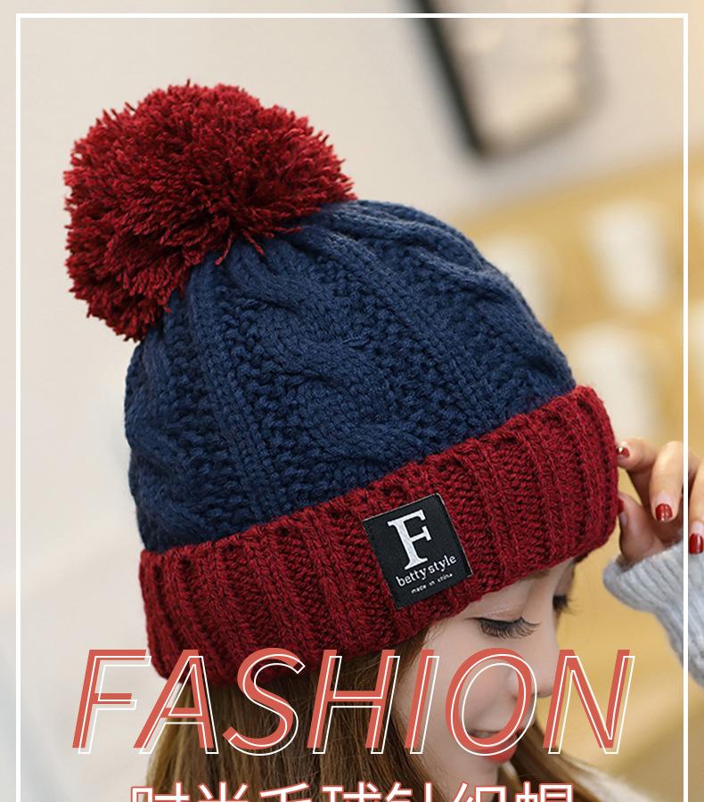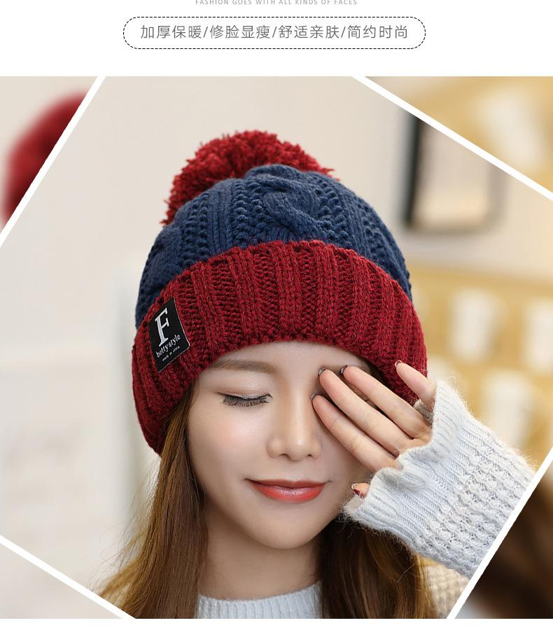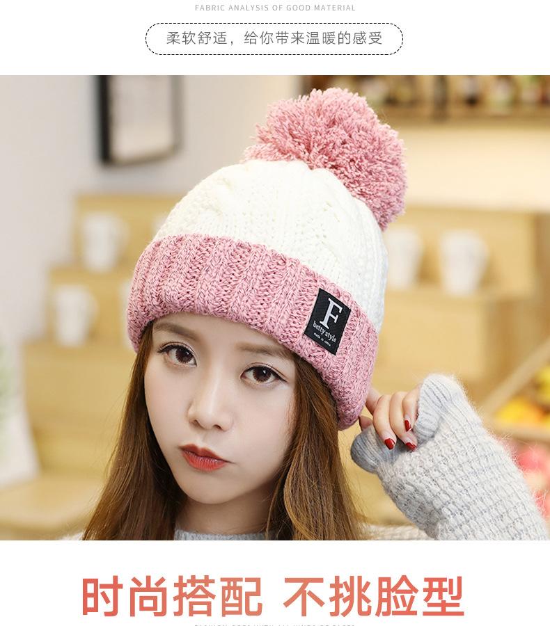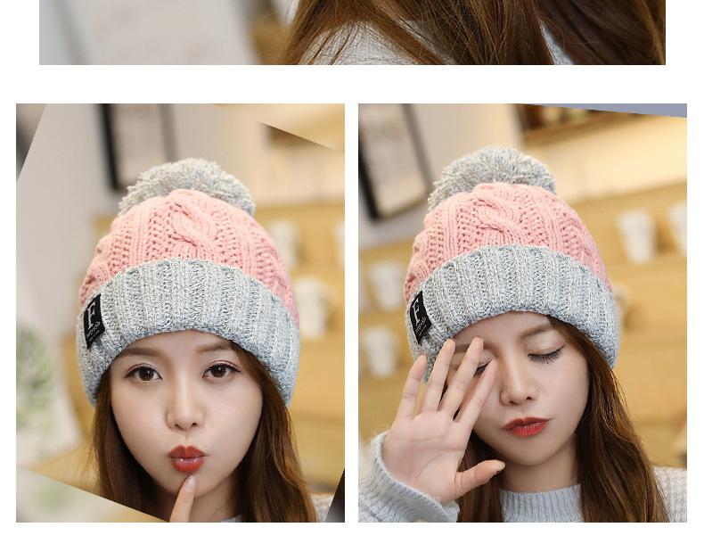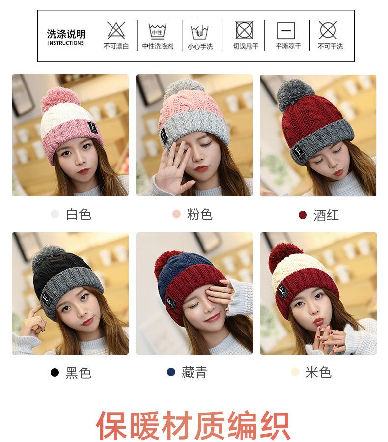 Versión coreana de gorro de lana de otoño e invierno para exteriores, además de gorro cálido acolchado de terciopelo con letras, gorro de punto de bola de lana con protección para los oídos para mujer