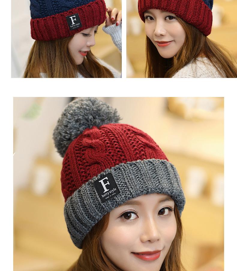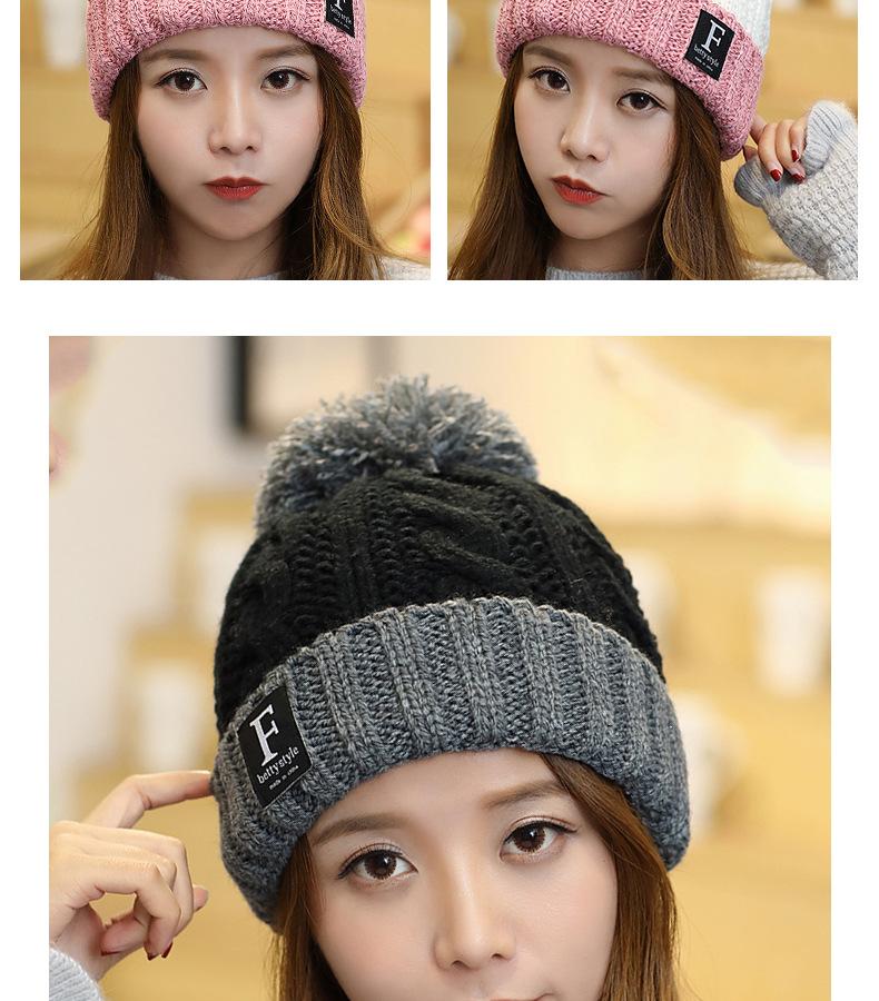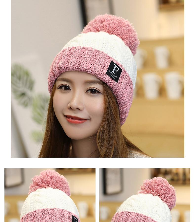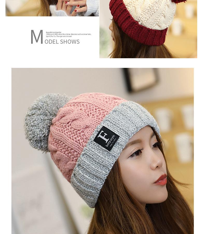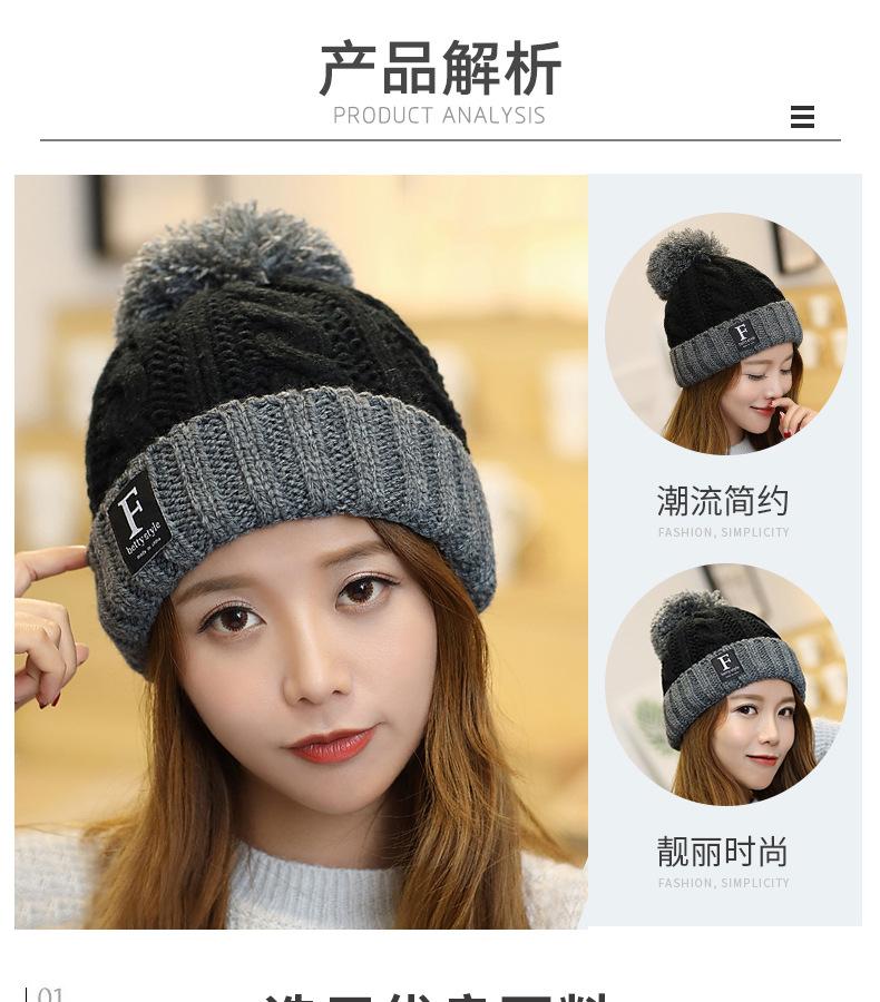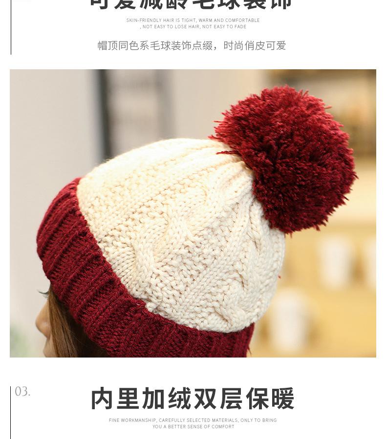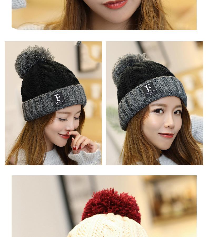 Versión coreana de gorro de lana de otoño e invierno para exteriores, además de gorro cálido acolchado de terciopelo con letras, gorro de punto de bola de lana con protección para los oídos para mujer