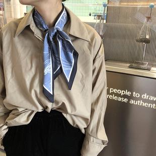 | Nueva bufanda de seda de imitación de otoño, pañuelo de seda multifuncional para mujer, estilo coreano, cinturón de flores antiguas con traje, bufanda de seda para el lugar de trabajo |