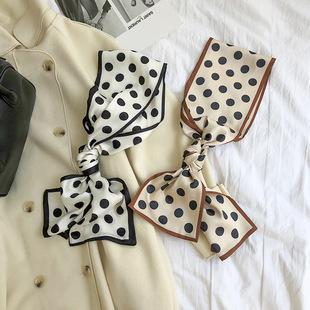 | Bufanda pequeña larga de seda japonesa y coreana, bufanda pequeña de seda de lunares franceses para combinar con la decoración del traje, cinta larga ancha de seda twill para mujer |