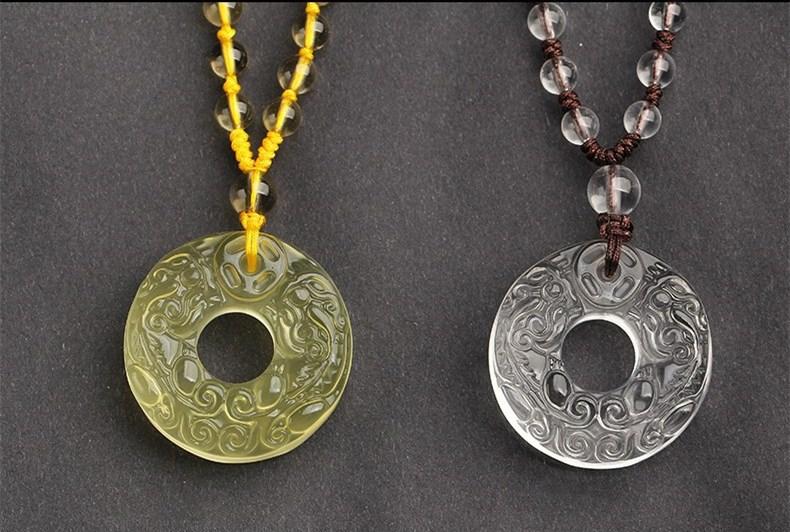 Collar con colgante de doble hebilla de paz valiente tallado en cristal amarillo y blanco natural, joyería de cristal al por mayor, suministro en vivo