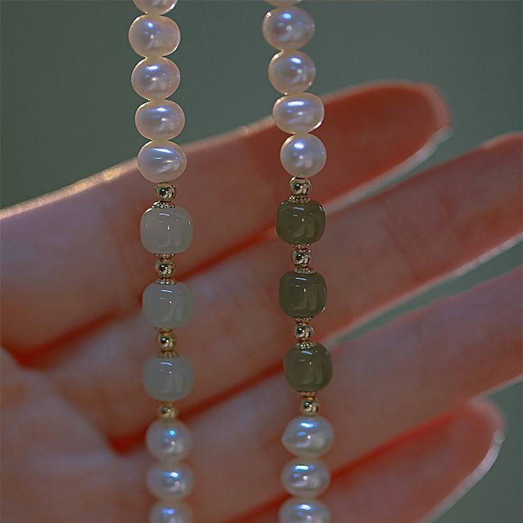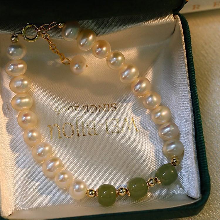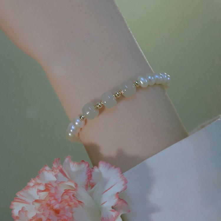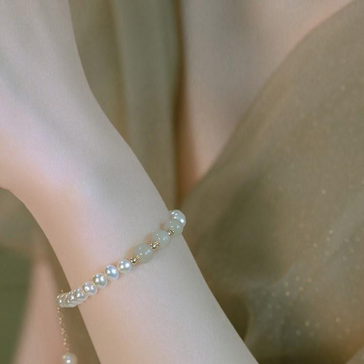 Pulsera de Perlas de Jade Hetian de Tres Líneas Carta de Amor Femenina 2023 Nueva Nicho Exquisita Lujo Ligero Francés Pulsera Avanzada