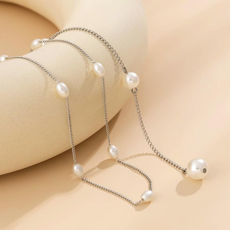 Collar de cadena para el cuerpo con borlas de perlas de imitación geométricas, cadena trasera sexy de playa, joyería transfronteriza europea y americana