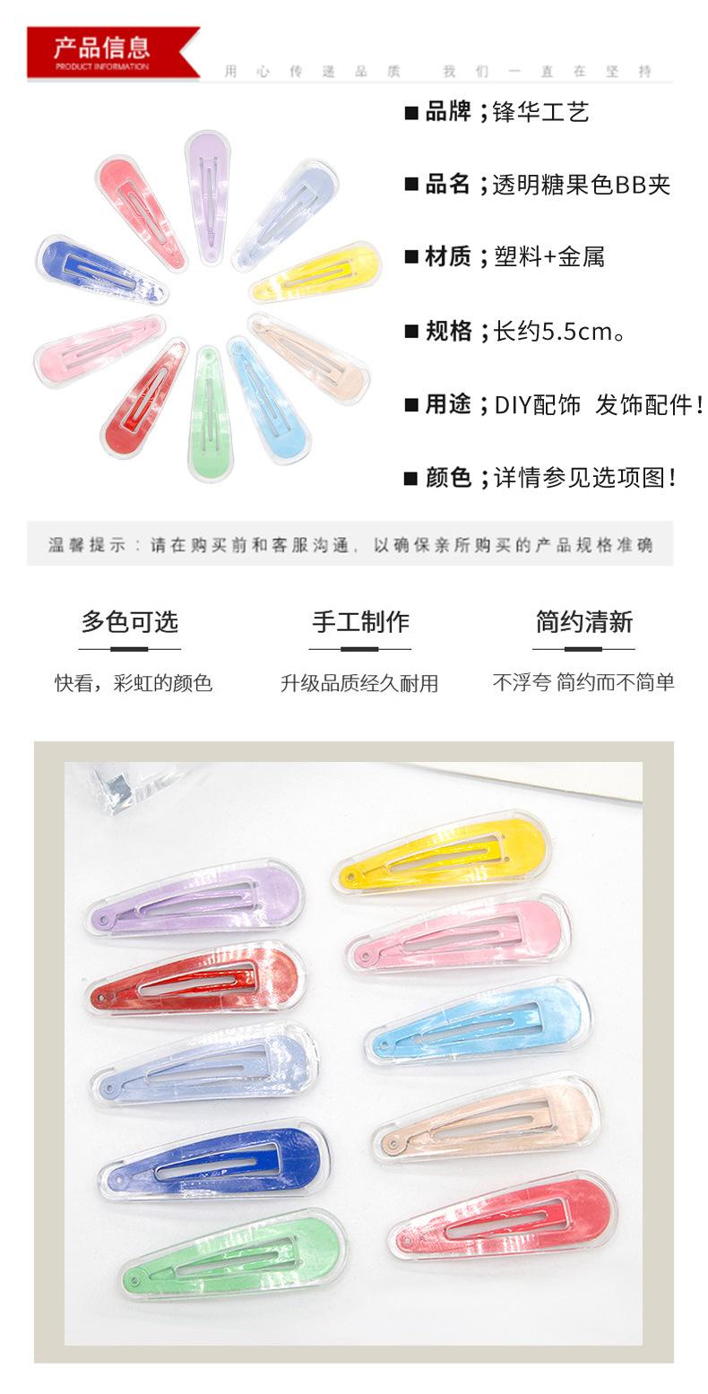 Bonita pinza para el flequillo de niña, pinza para la nuca, color caramelo, gotas de agua, plástico transparente, pinza BB, horquilla de moda que combina con todo, hecha a mano.