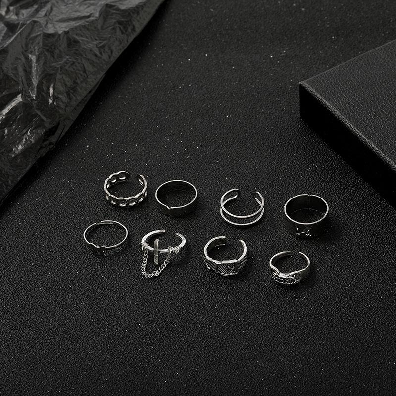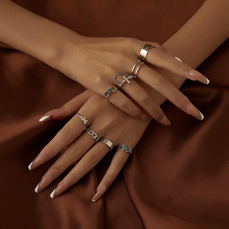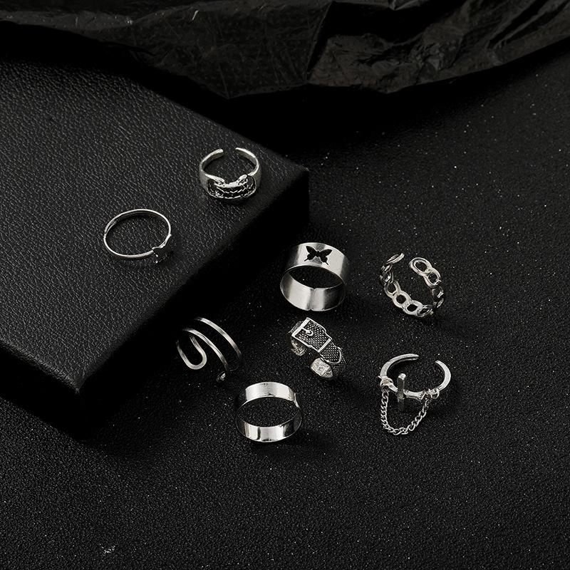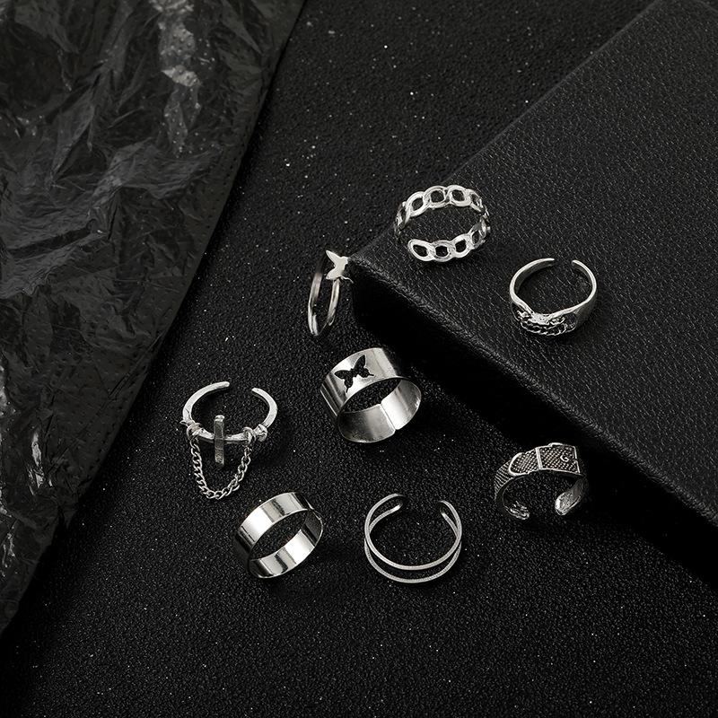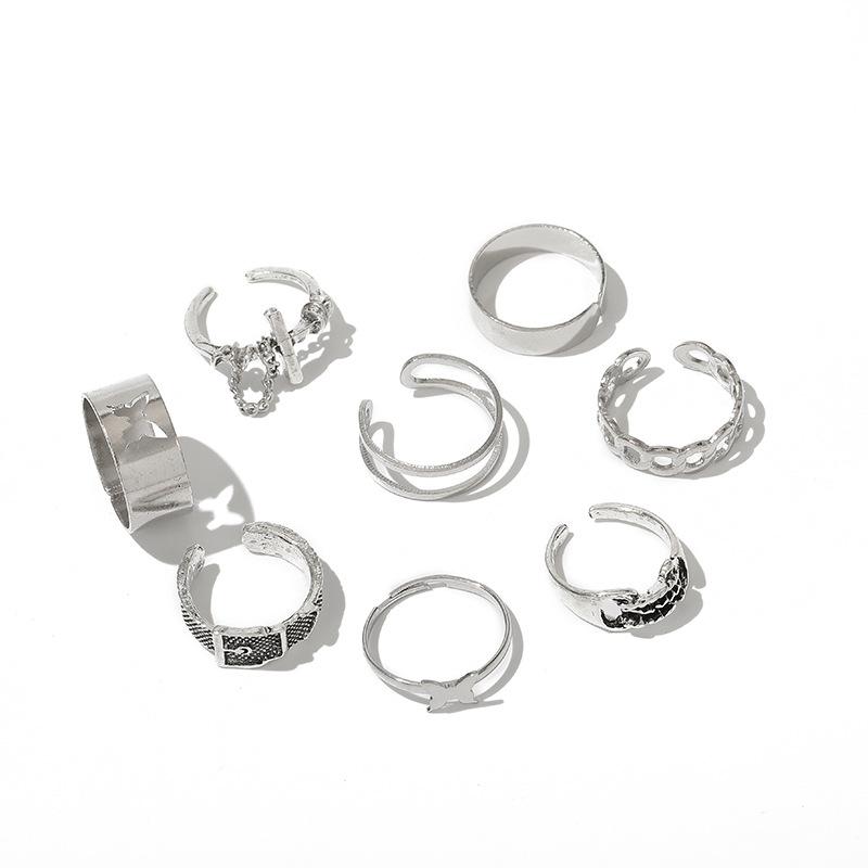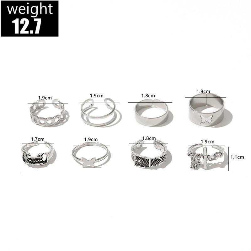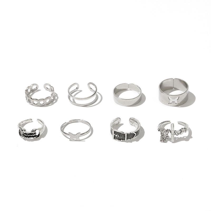 Europa y Estados Unidos transfronterizo nuevo retro hueco cadena de mariposa gema juego de combinación de 8 piezas anillo