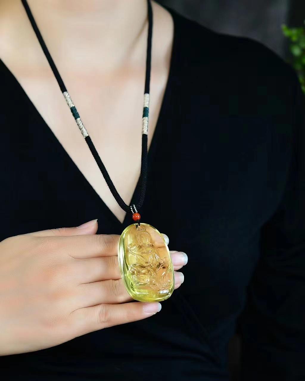 Venta al por mayor de fábrica de citrino natural Manshu Bodhisattva Zodiac Rabbit Buddha colgante collar suéter cadena colgante joyería