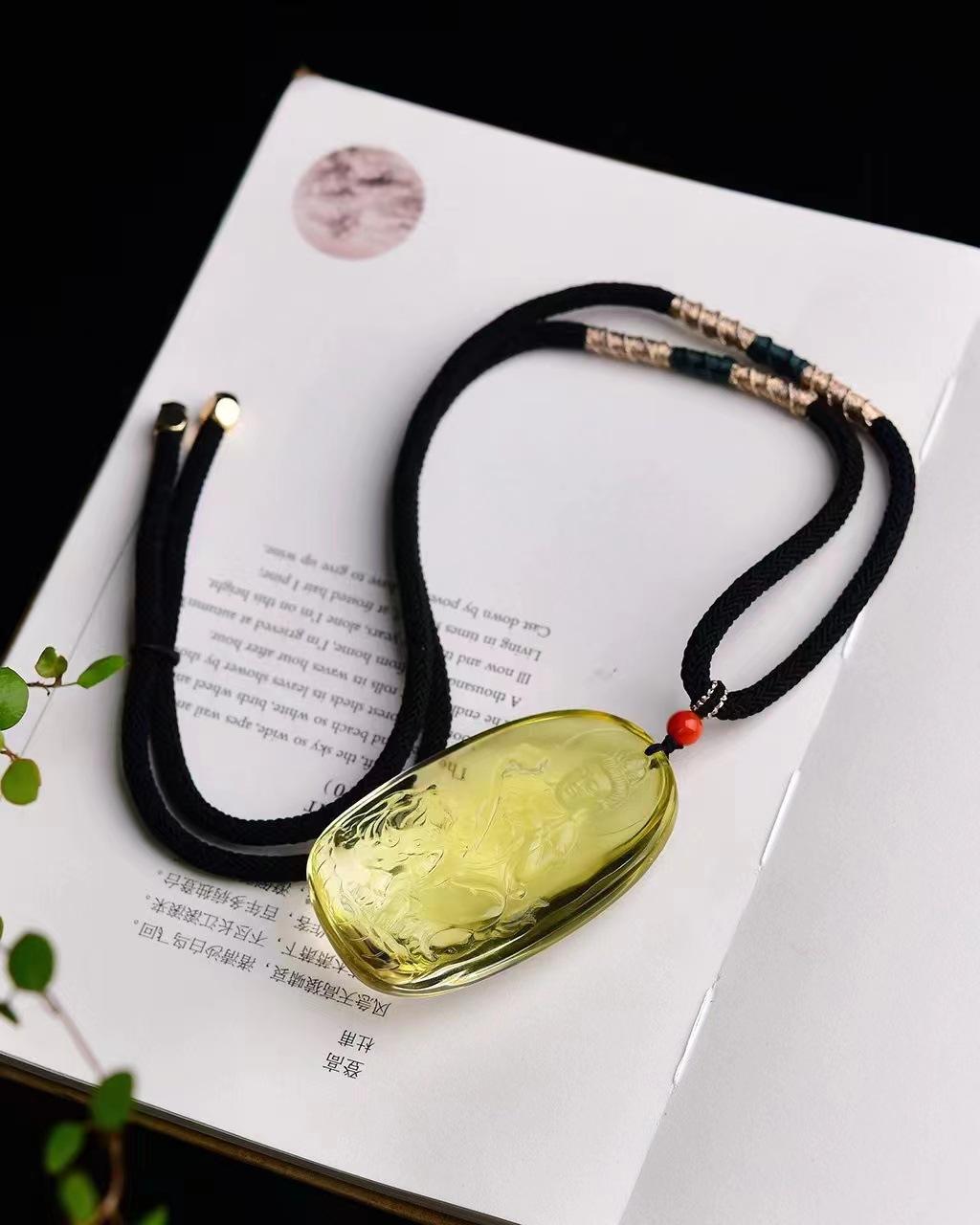 Natural citrine manjushri bodhisattva (approximately 49.3*33.6*13mm) pendant