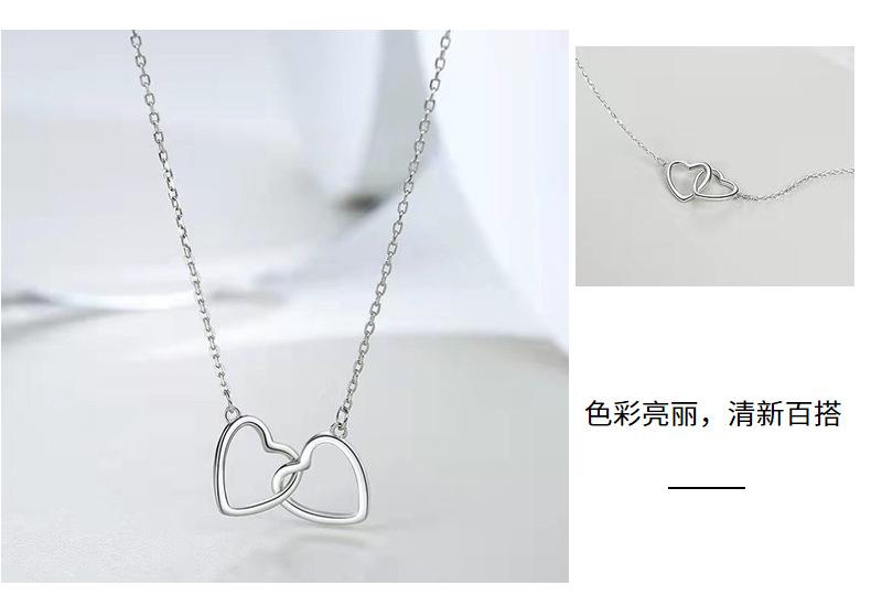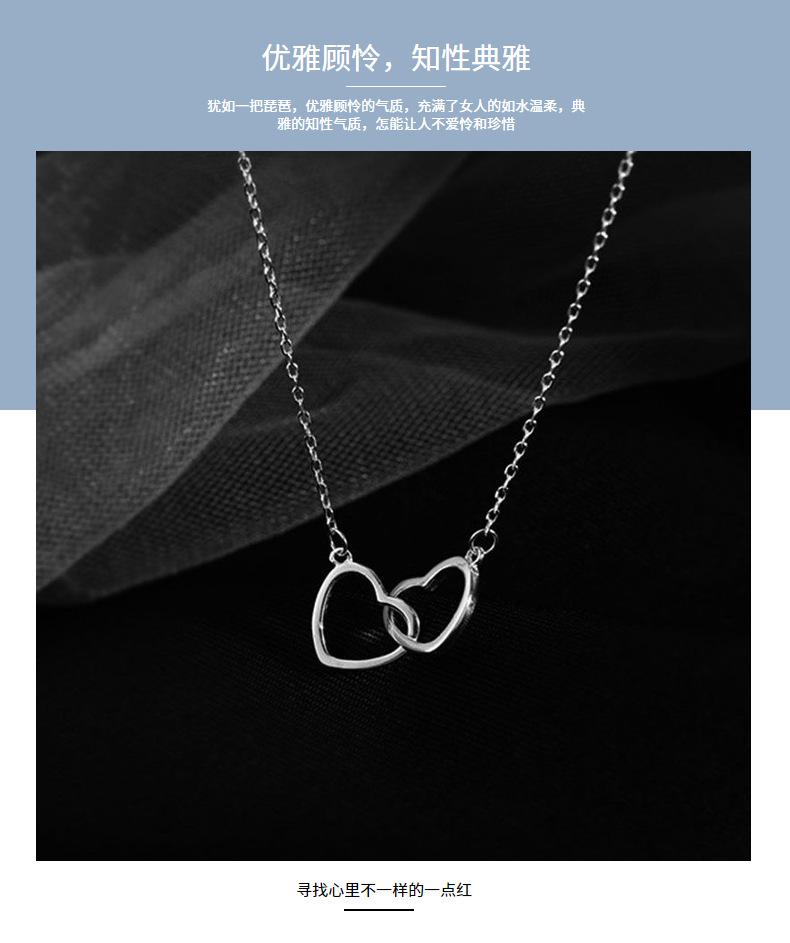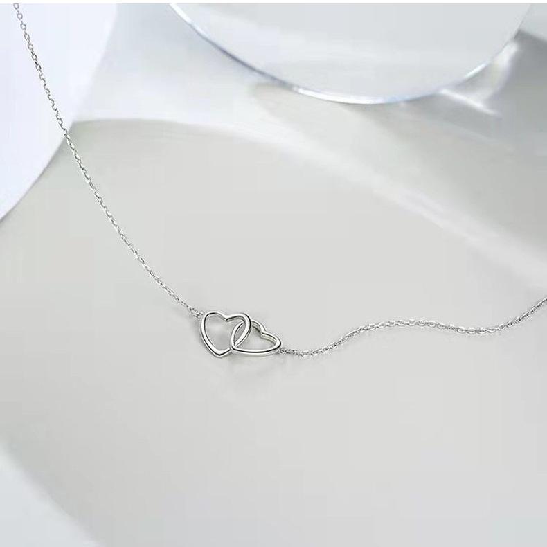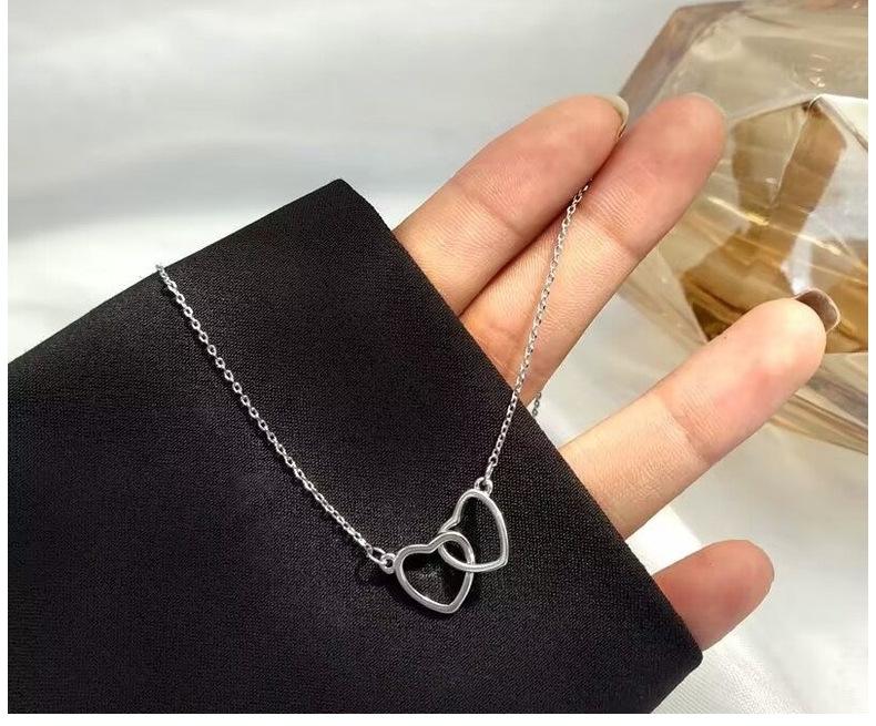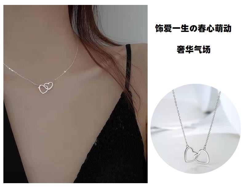 Collar de doble amor sombrío de plata esterlina S925, colgante de doble anillo en forma de corazón de lujo, cadena de clavícula de alta calidad para novia.