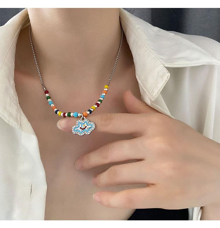 Collar con colgante de nube con cuentas de colores vibrantes, moderno y elegante, para mujer, accesorios de nicho explosivos 2023.