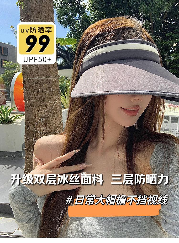 Sombrero de copa vacío para mujer, anti-ultravioleta, verano, ala extra grande, sombrero para el sol para ciclismo, doble capa, seda de hielo, protección solar, sombrero para el sol para ciclismo