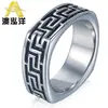 Anillo de Acero de Titanio con Patrón de la Gran Muralla Retro de Moda Anillo de Acero Inoxidable con Patrón Retro para Hombres y Mujeres Joyería HZ014
