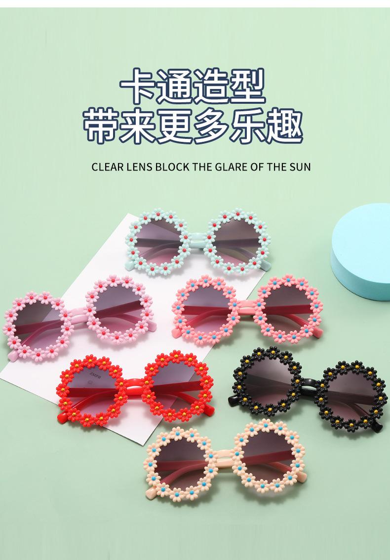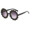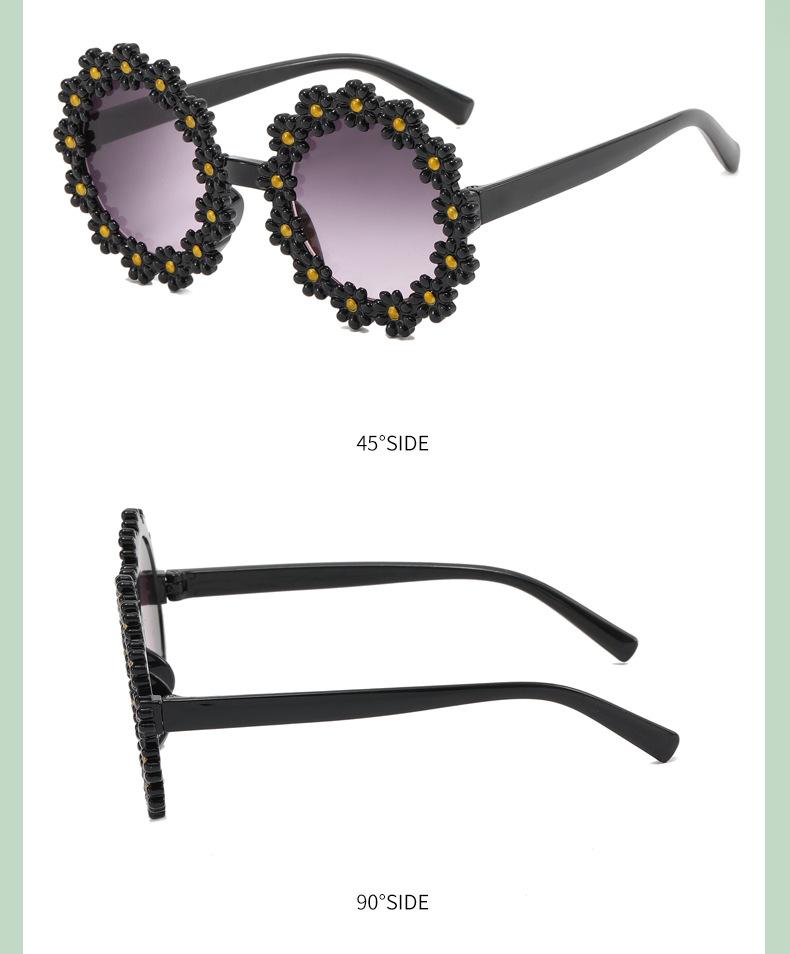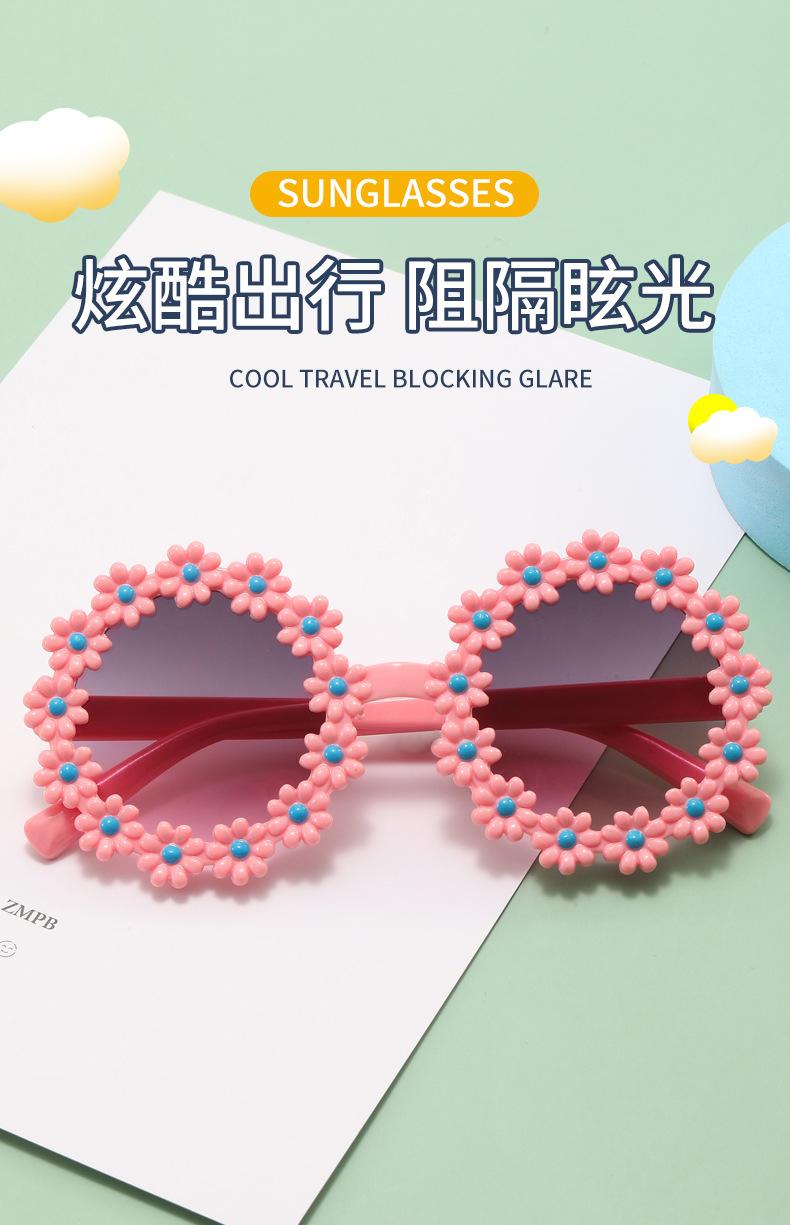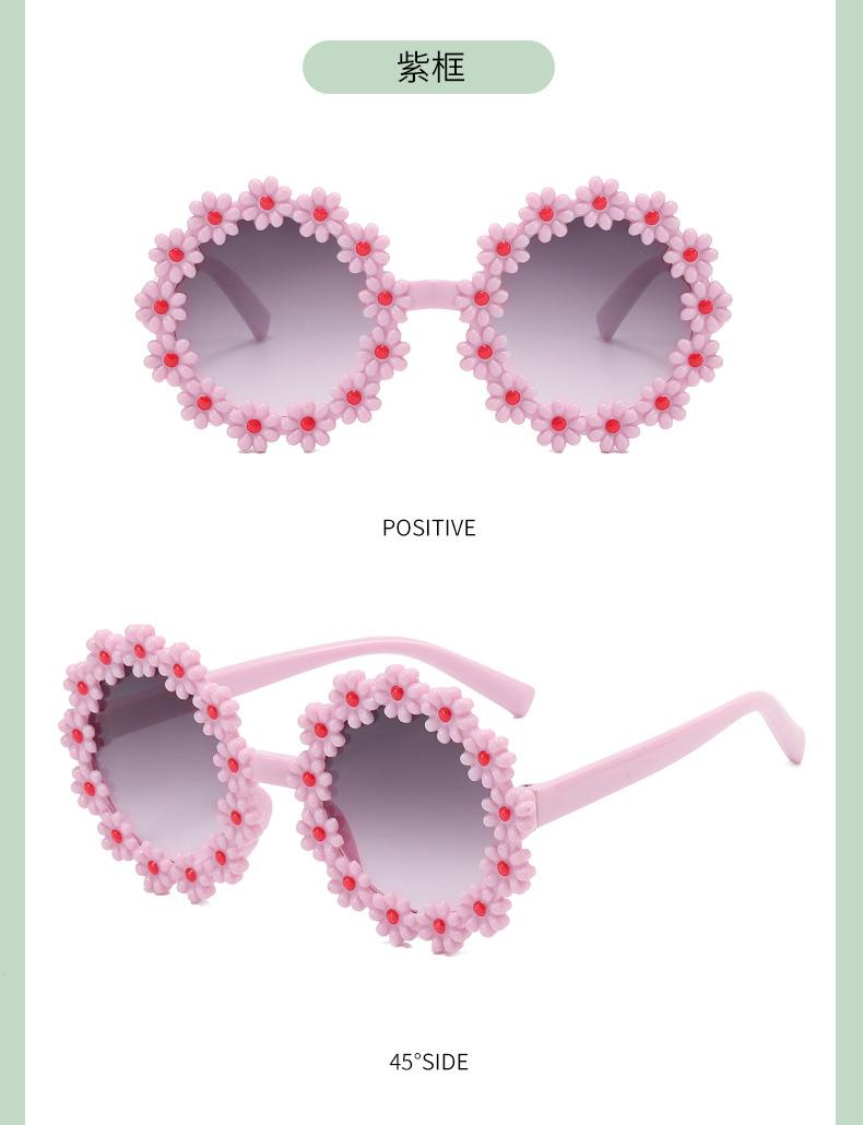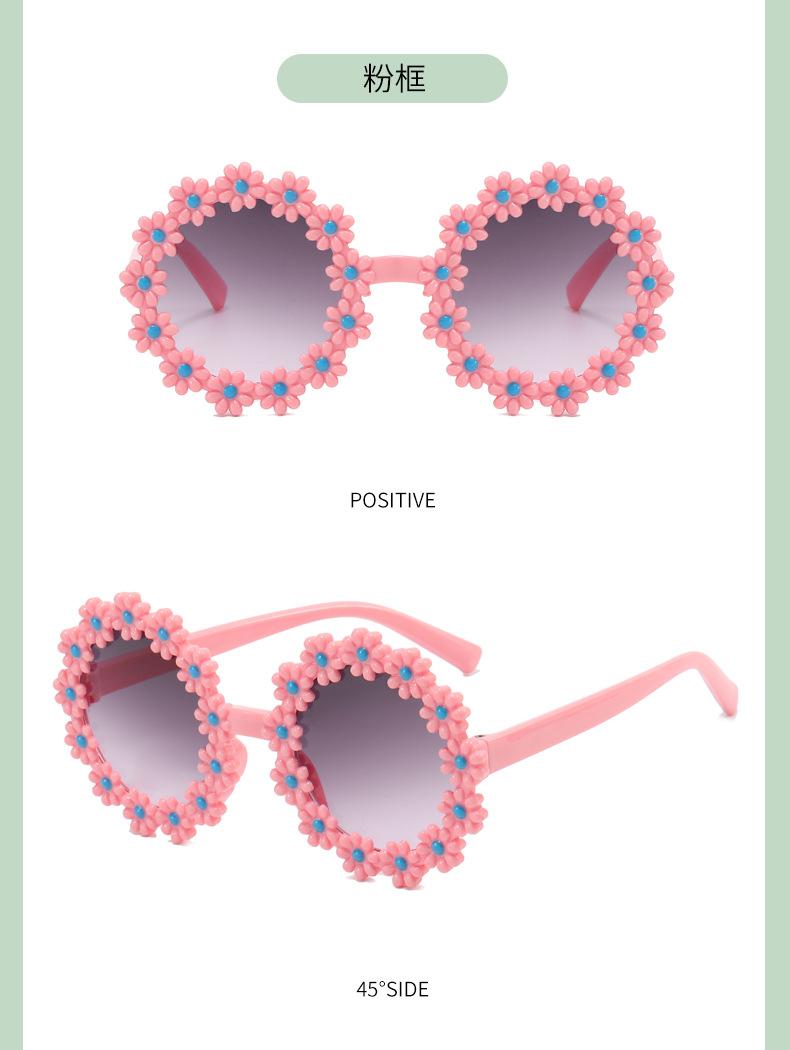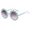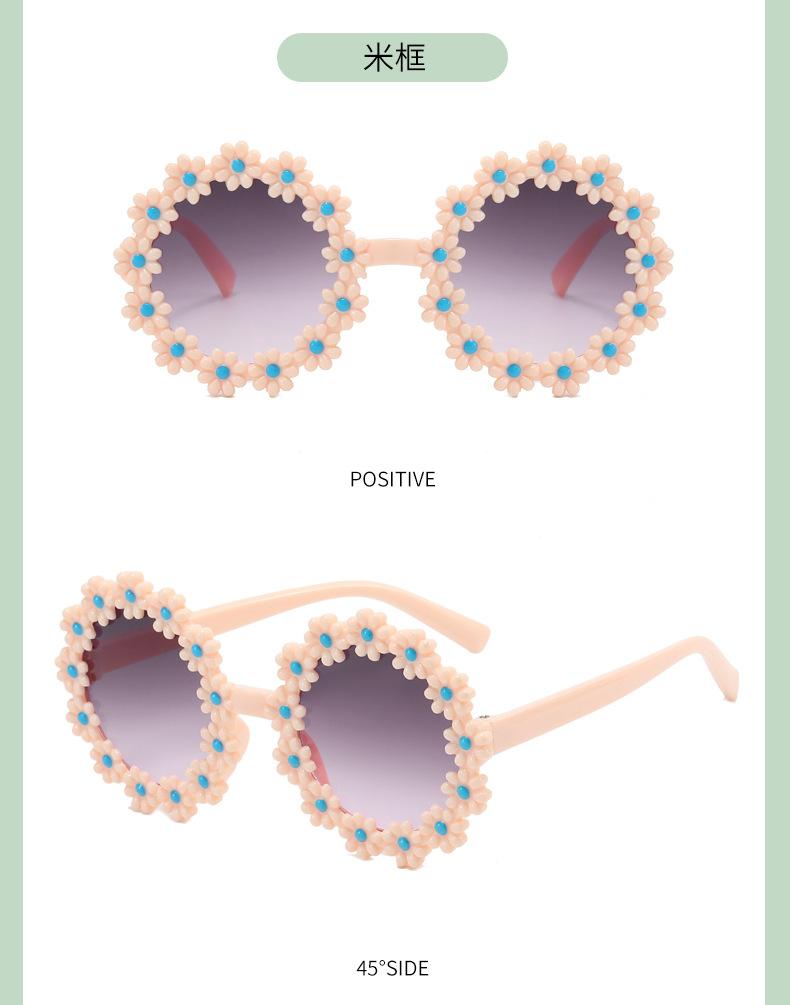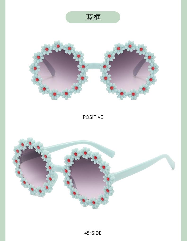 Gafas de sol de fiesta para niños y niñas, con montura redonda y flores decorativas, protección UV para exteriores y juegos.