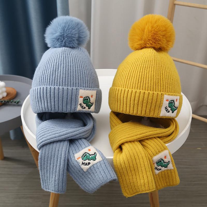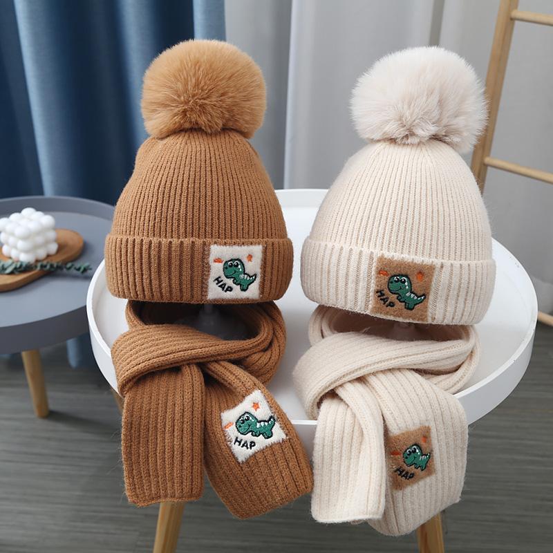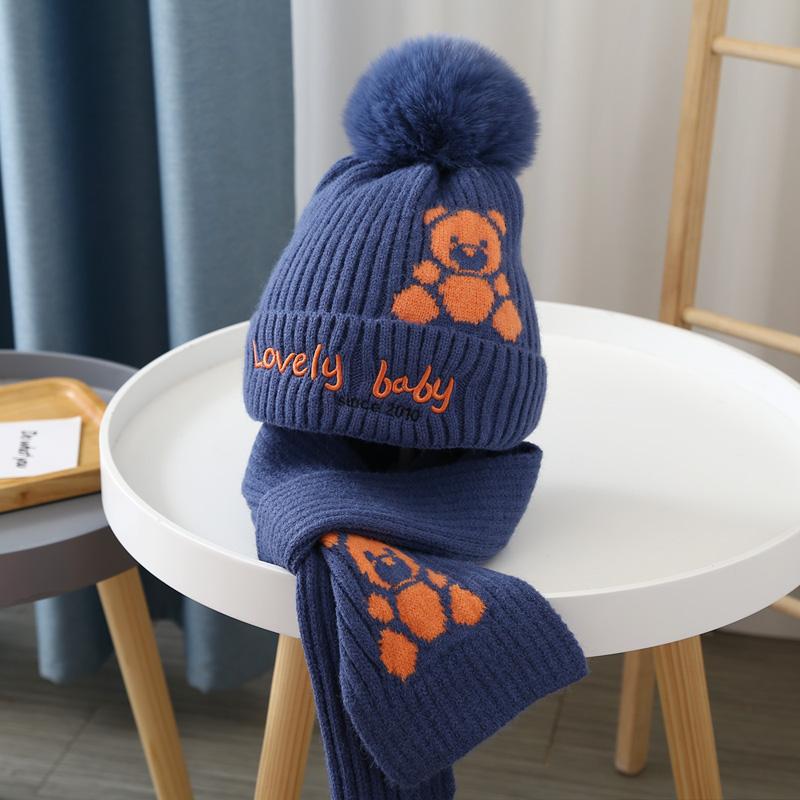 Conjunto de gorro y bufanda para niños CUHK, gorro de lana con forro de algodón cálido de invierno para niños y niñas, gorro de dos piezas para bebé