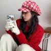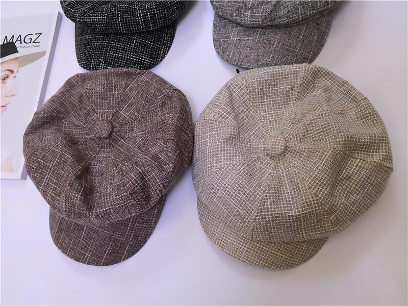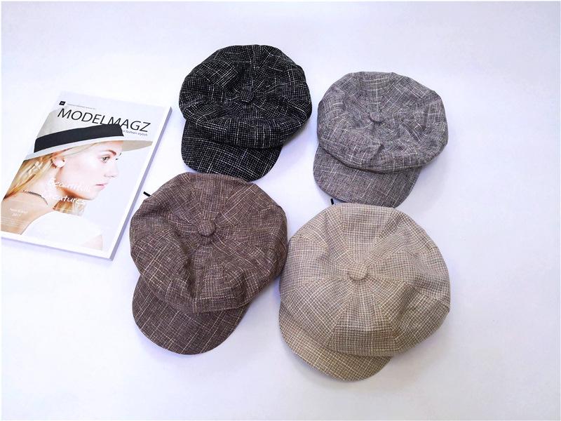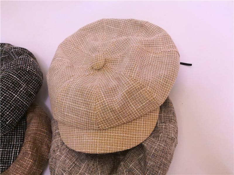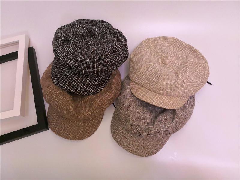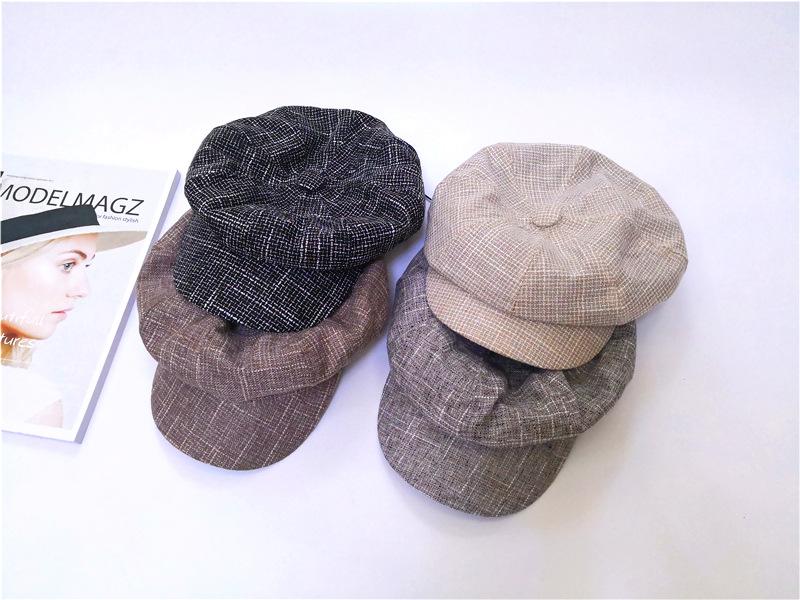 Nuevo Sombrero Octogonal Delgado de Primavera y Otoño para Mujer Estilo Británico Coreano Dulce Lindo Boina Protector Solar Moda Cuadros Pintor