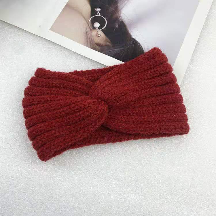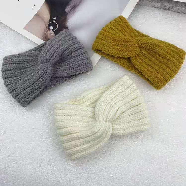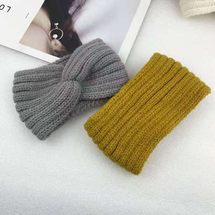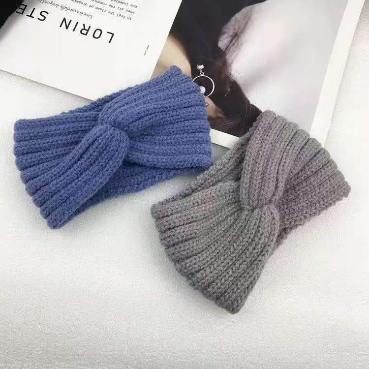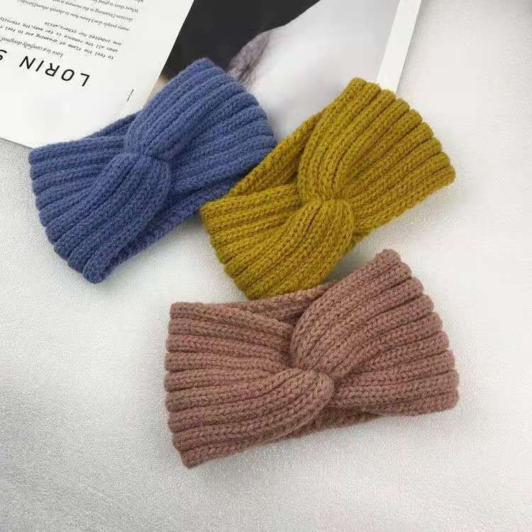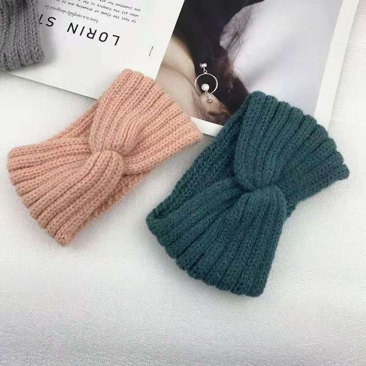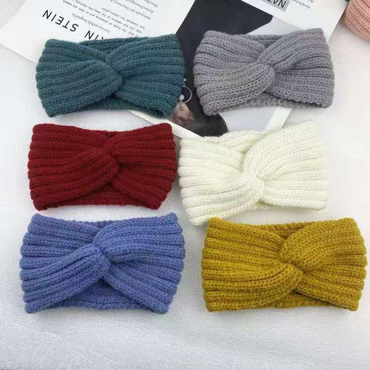 Banda para el cabello de punto para mujer, diadema de ala ancha retro europea y americana, accesorios para el cabello de lana cruzada populares en Internet coreana, moda de lavado de orejas de otoño e invierno