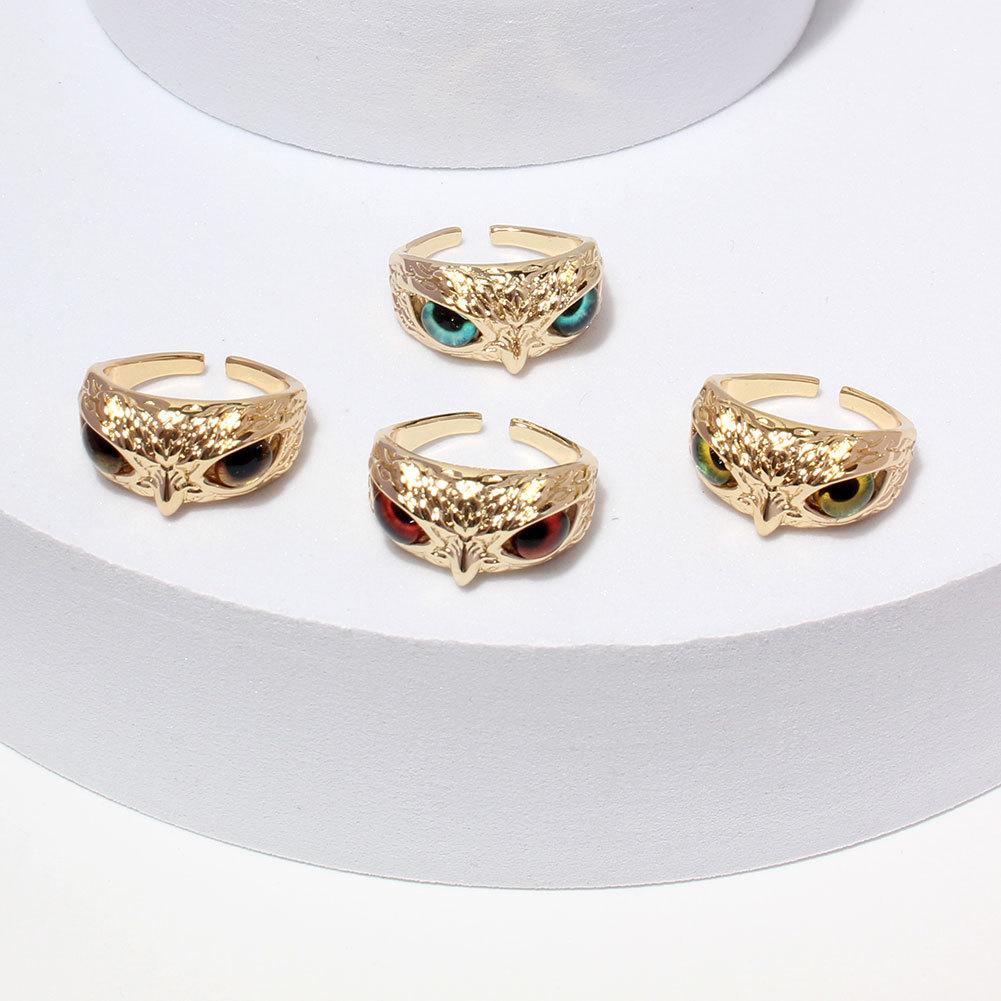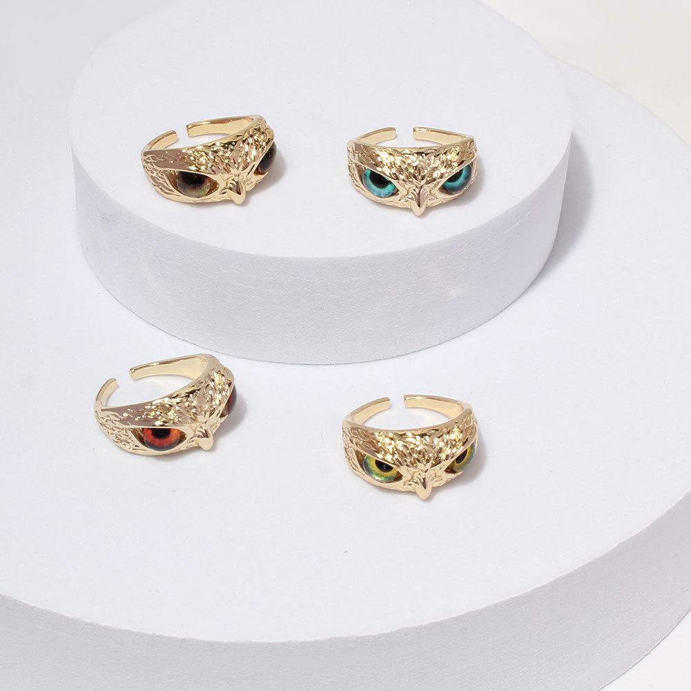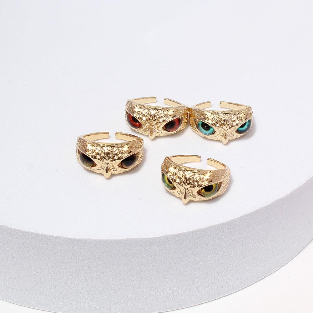 Anillo ajustable de búho chapado en cobre con personalidad de joyería de moda europea y americana, anillo de textura exagerada de moda F14210