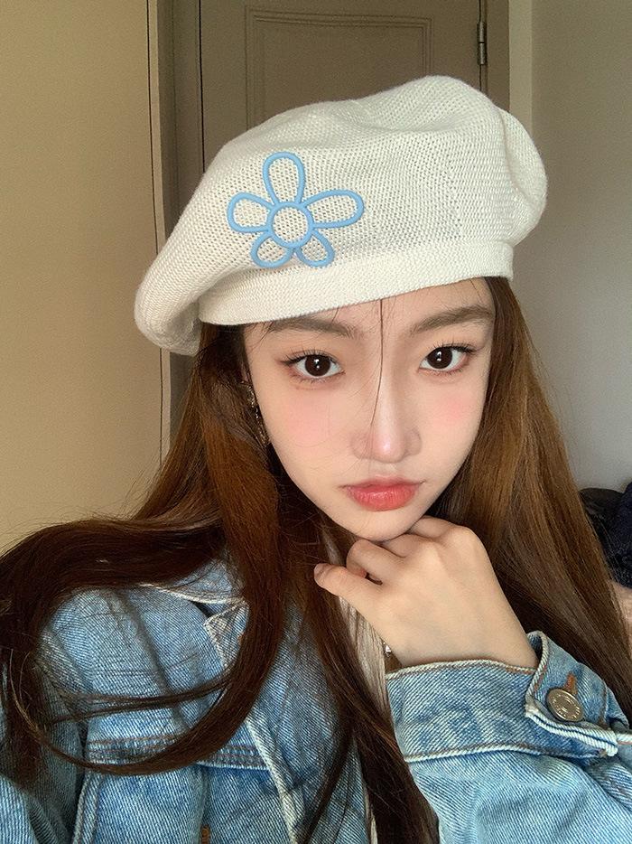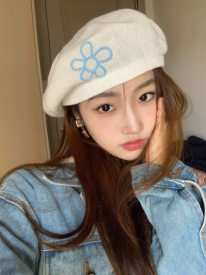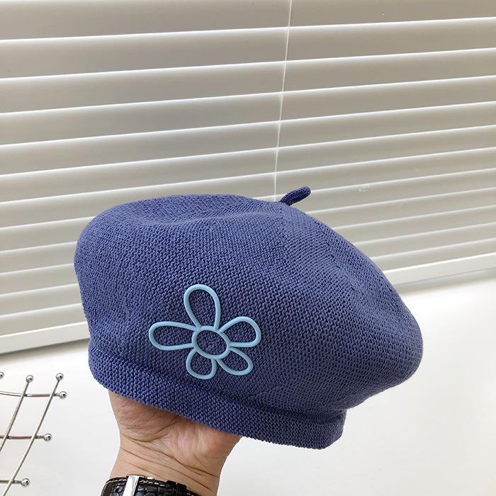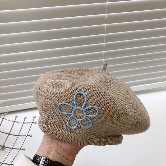 Internet Red Blogger Recomienda Boina de Flor Retro Coreana para Niños Primavera y Verano Seda de Mantequilla Transpirable Sombrero de Calabaza Sombrero Protector Solar