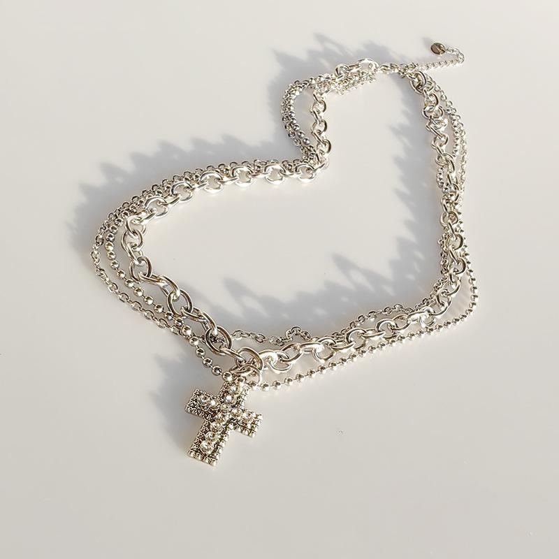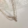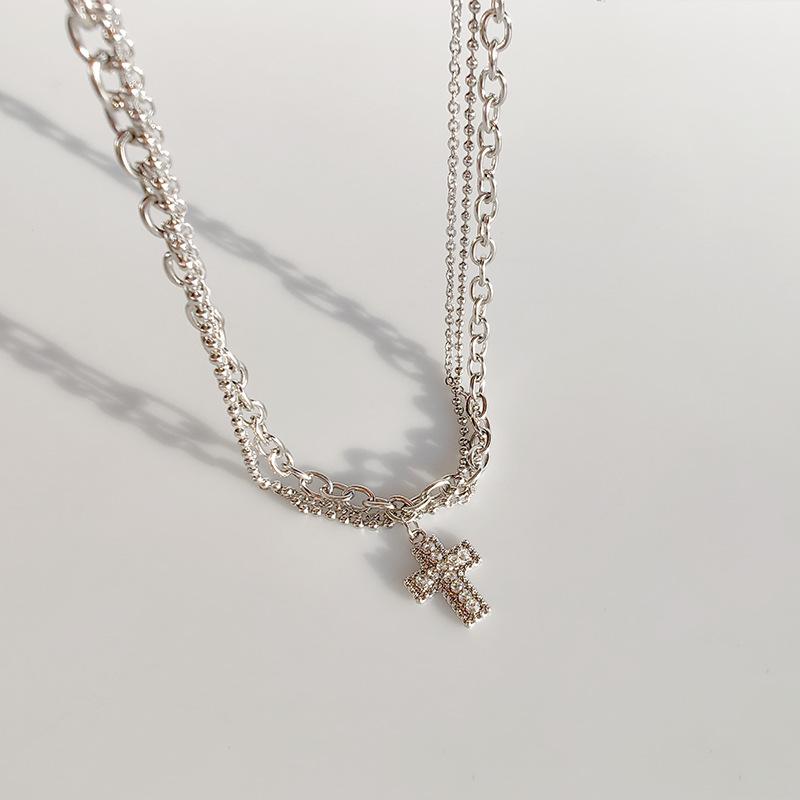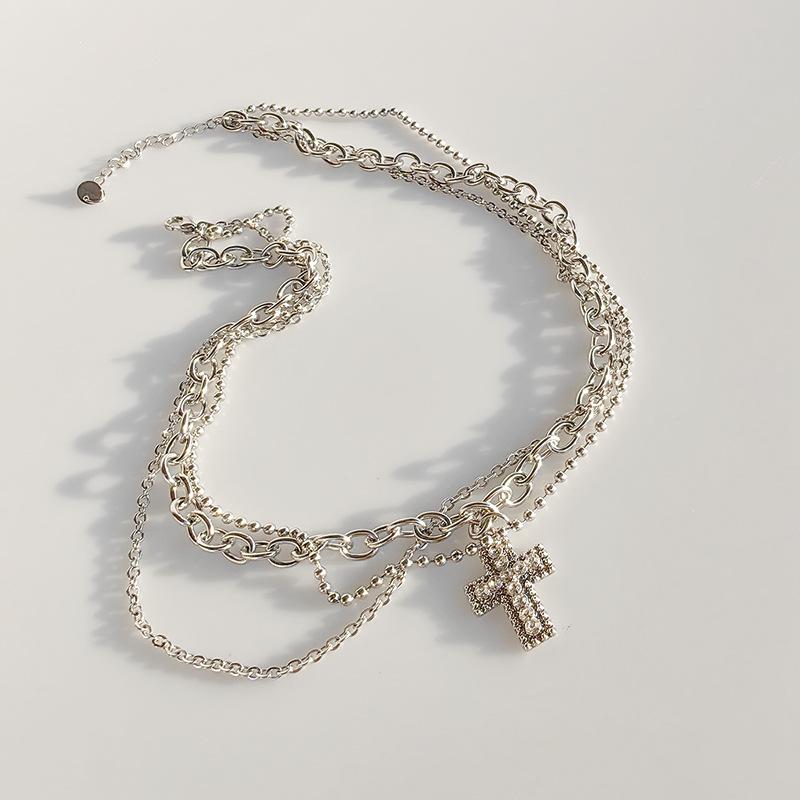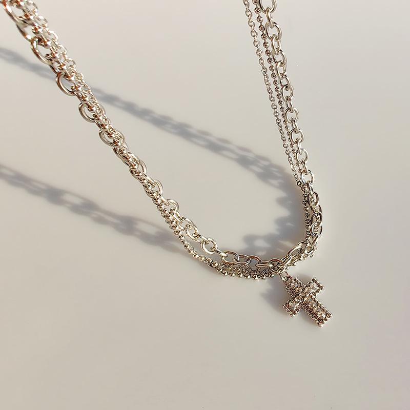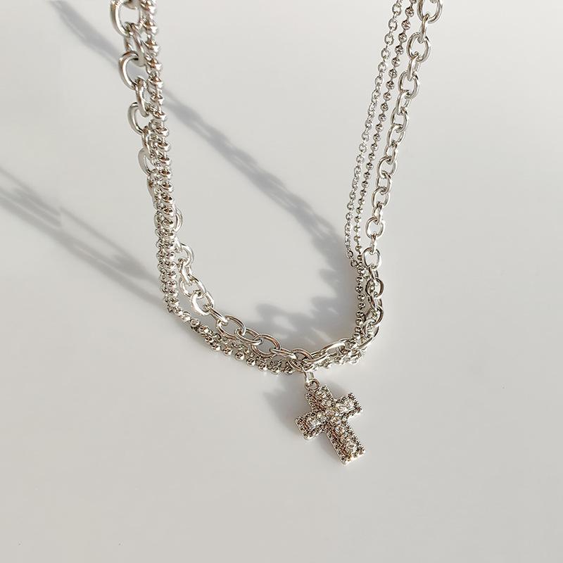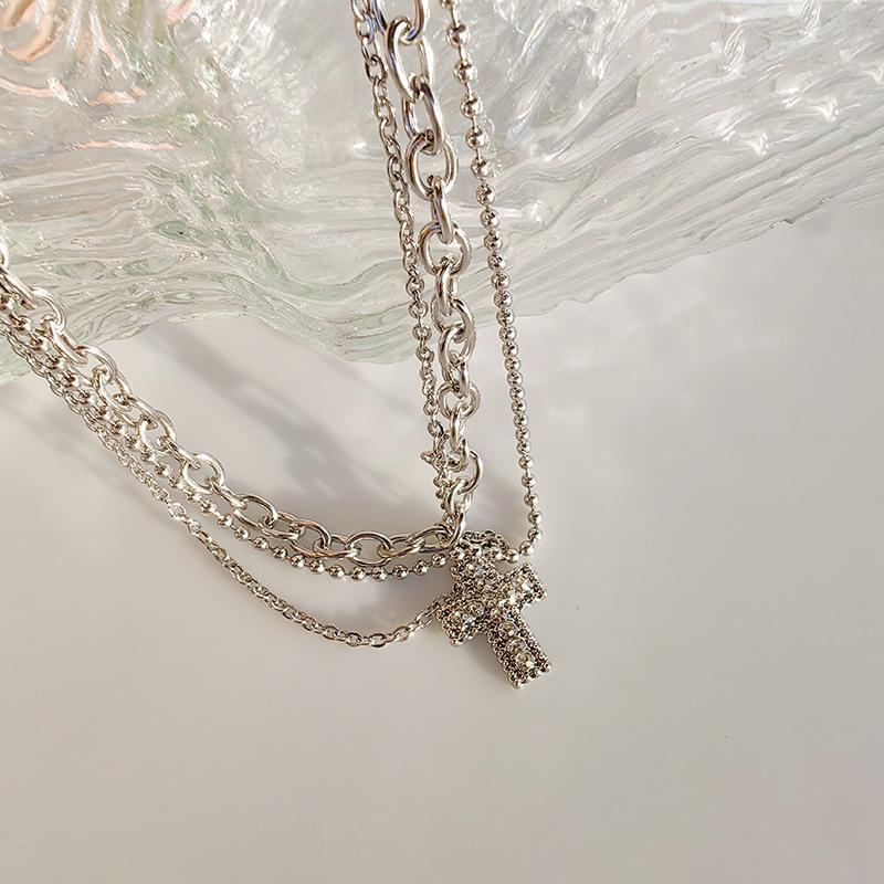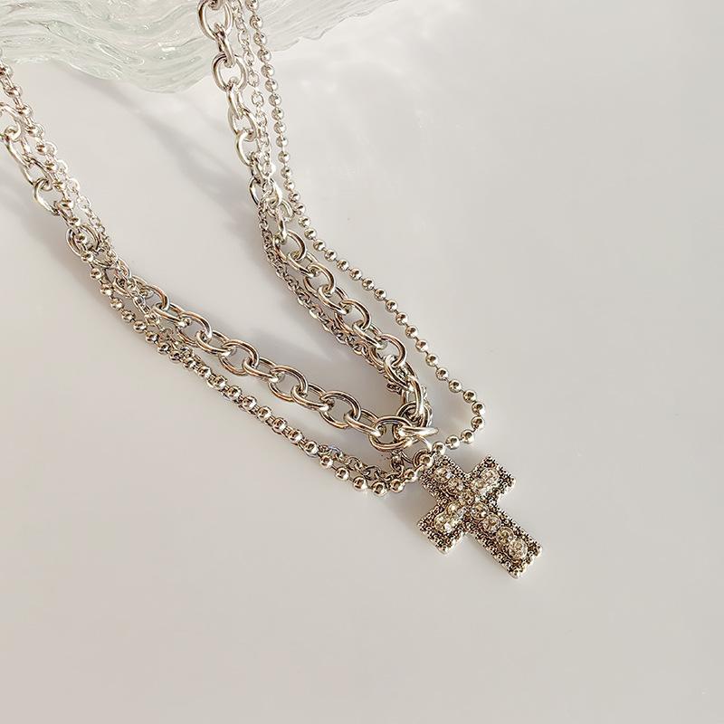 Nuevo y dulce collar cruzado de diamantes de imitación de lujo, ligero y multicapa, estilo moderno y elegante, cadena de clavícula para mujer, estilo nicho de chica atractiva y fría.