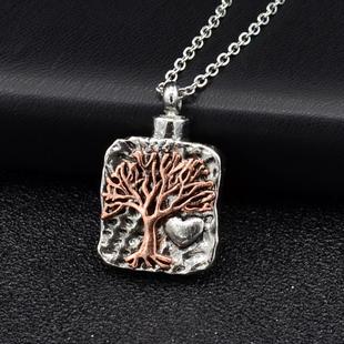 Colgante de botella de perfume con forma de árbol de la vida, personalizado, retro, bicolor, europeo y americano, para mascota familiar, collar de una pieza