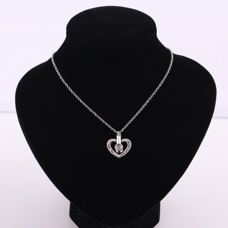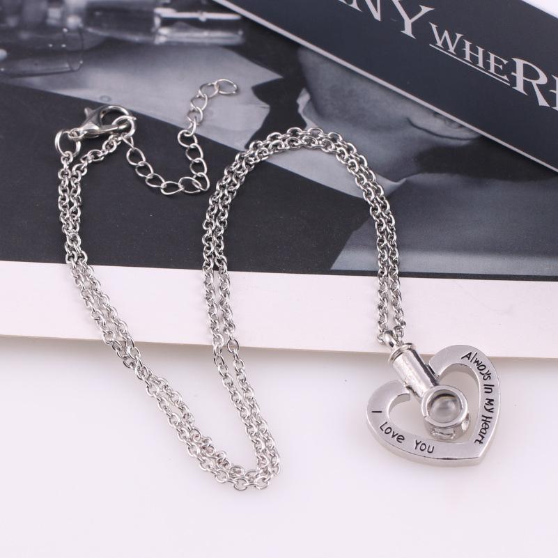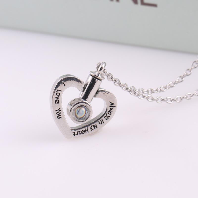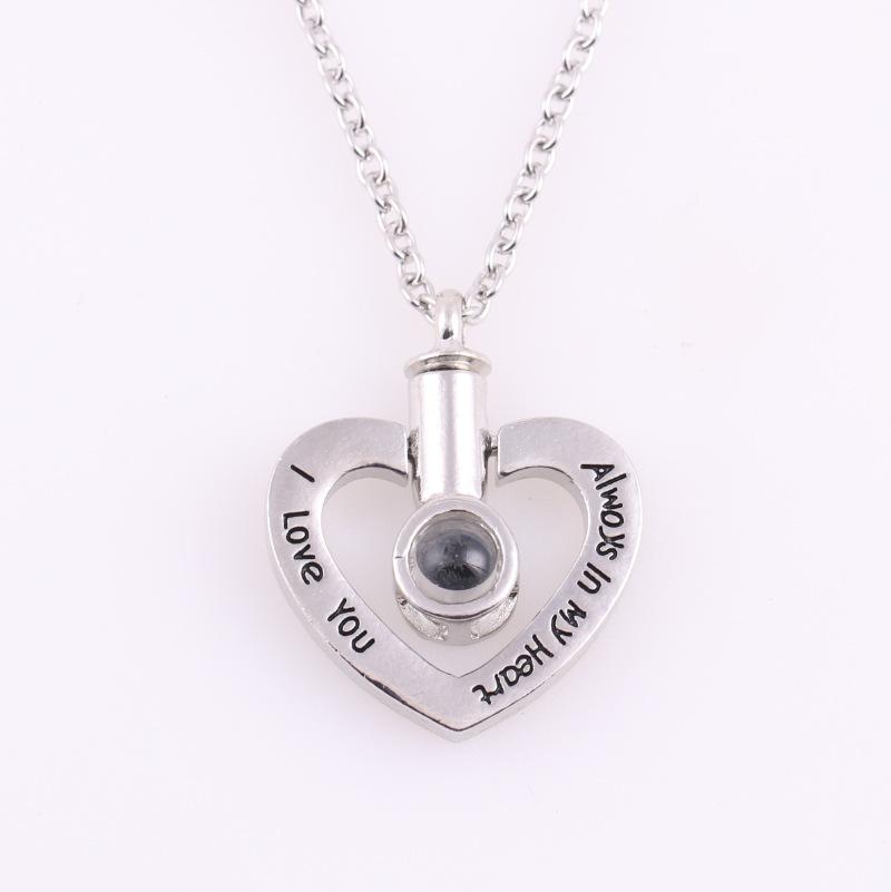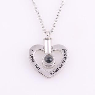 Nuevo y popular collar con colgante en forma de corazón con urna "Te amo" en 100 idiomas, venta transfronteriza, muy popular