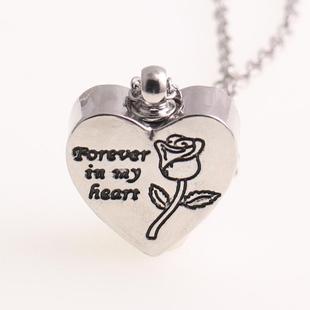 Nuevo collar de urna de rosa con grabado "Por siempre en mi corazón" europeo y americano, frasco de perfume en forma de corazón