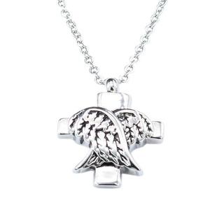 Venta caliente de comercio exterior, colgante de botella de perfume con alas de ángel y cruz, nuevo collar de urna de animal abierto K983