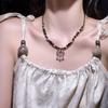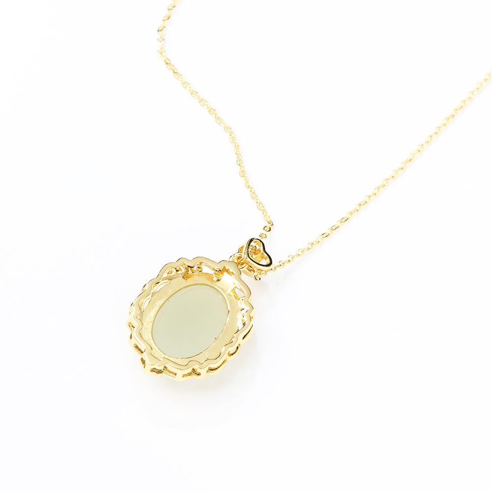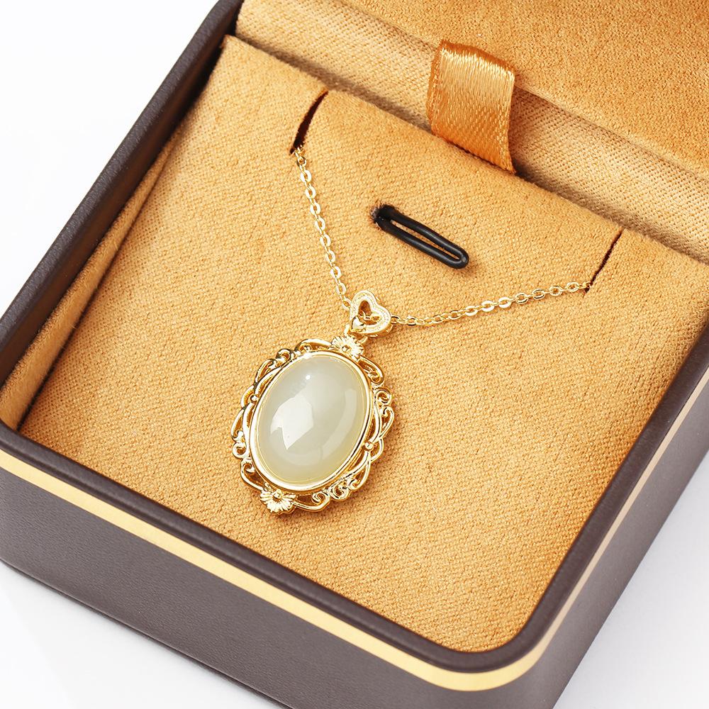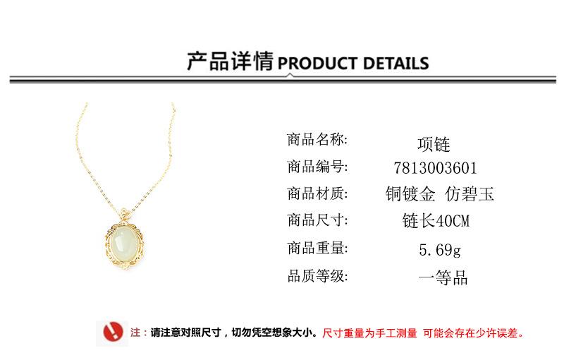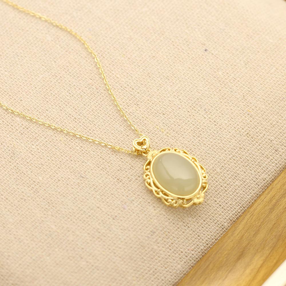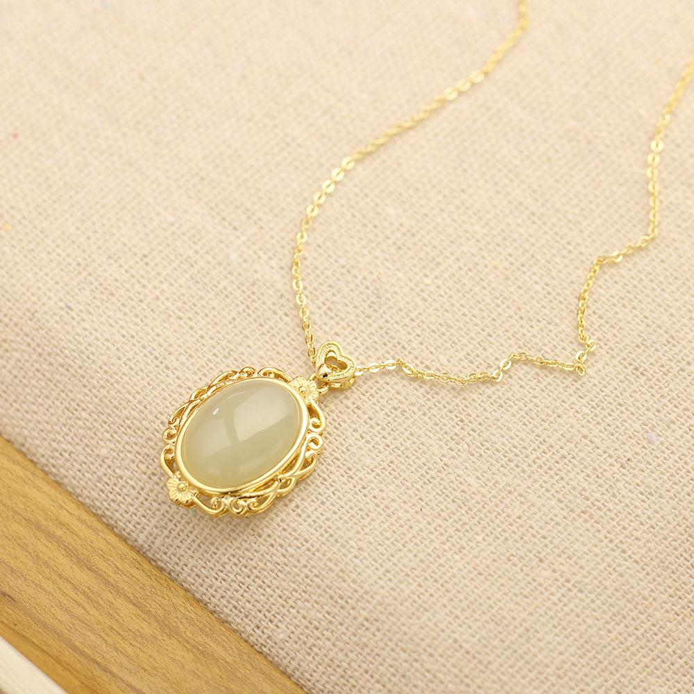 Nuevo colgante de jade hetiano de imitación ovalado con diseño hueco de estilo palacio chino, cadena de clavícula sencilla chapada en oro, collar para mujer