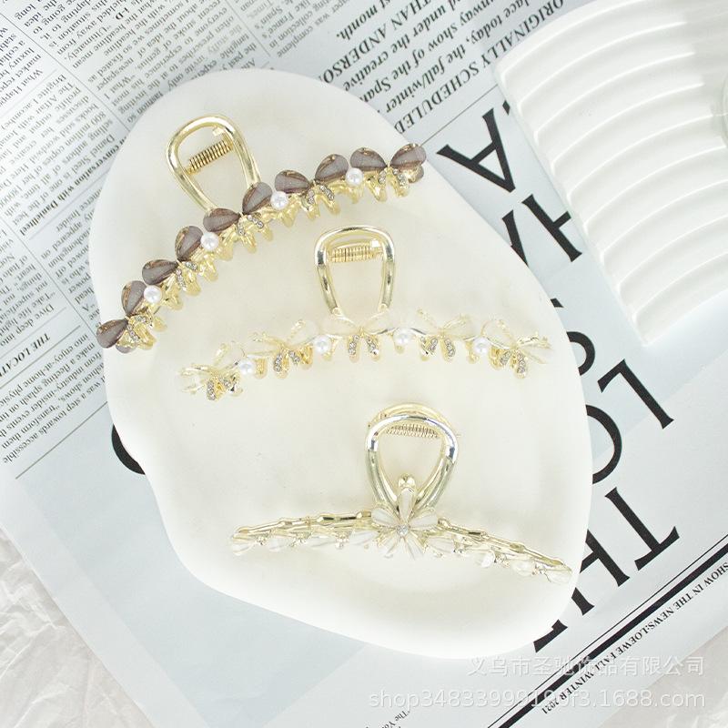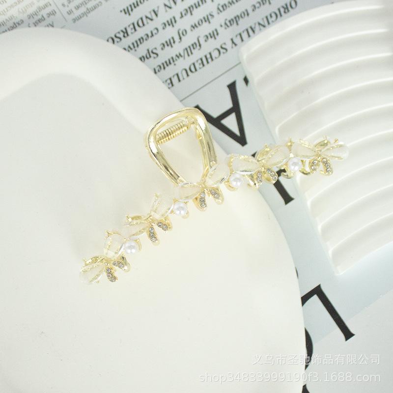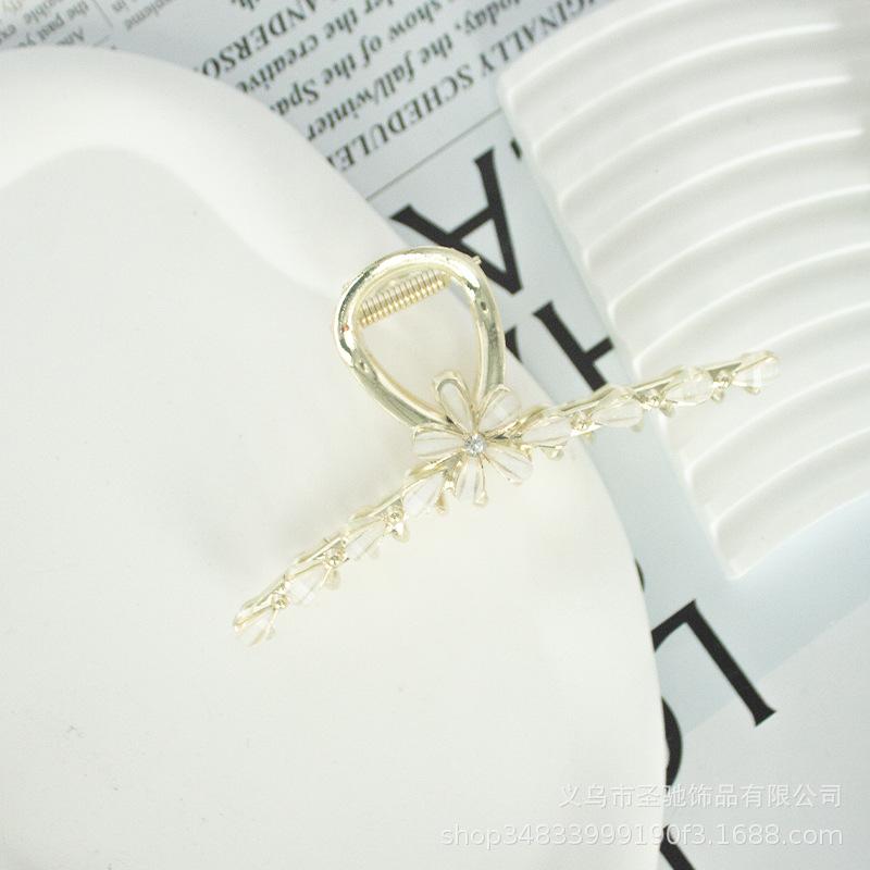 Horquilla con lazo de cristal de ópalo para mujer, nueva horquilla para el pelo con flor retro de verano, pinza grande con diseño de tiburón