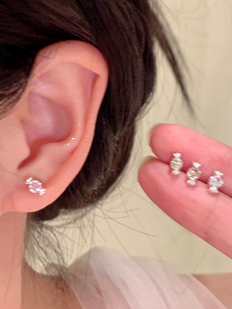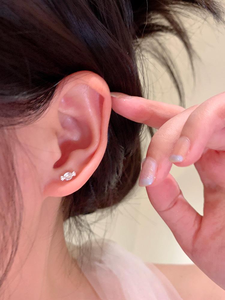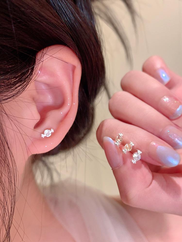 Pendientes de plata de ley S999 con forma de caramelo y circonita, pendientes de lujo avanzados, exquisitos mini pendientes con forma de hueso para la oreja, accesorios para uña, venta al por mayor