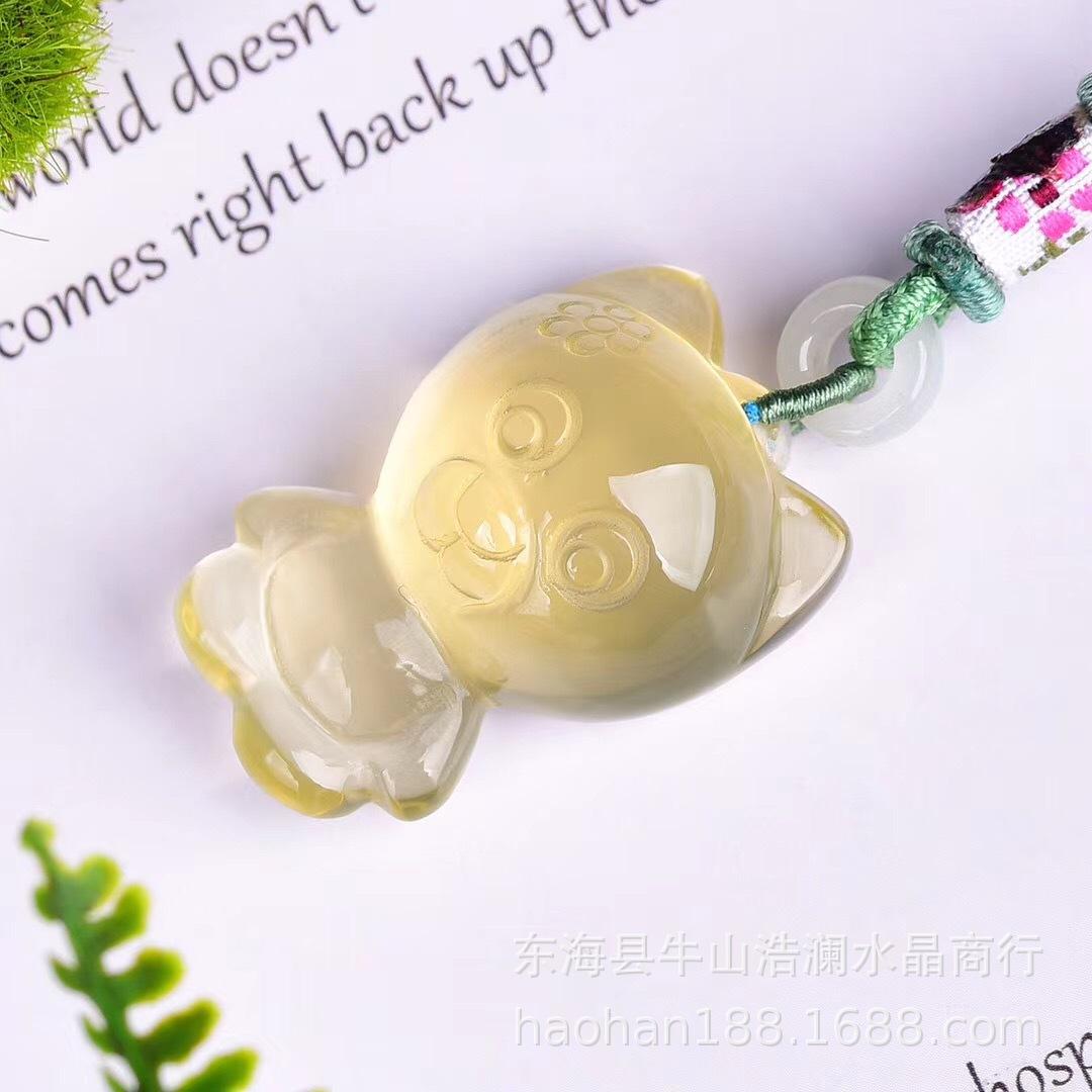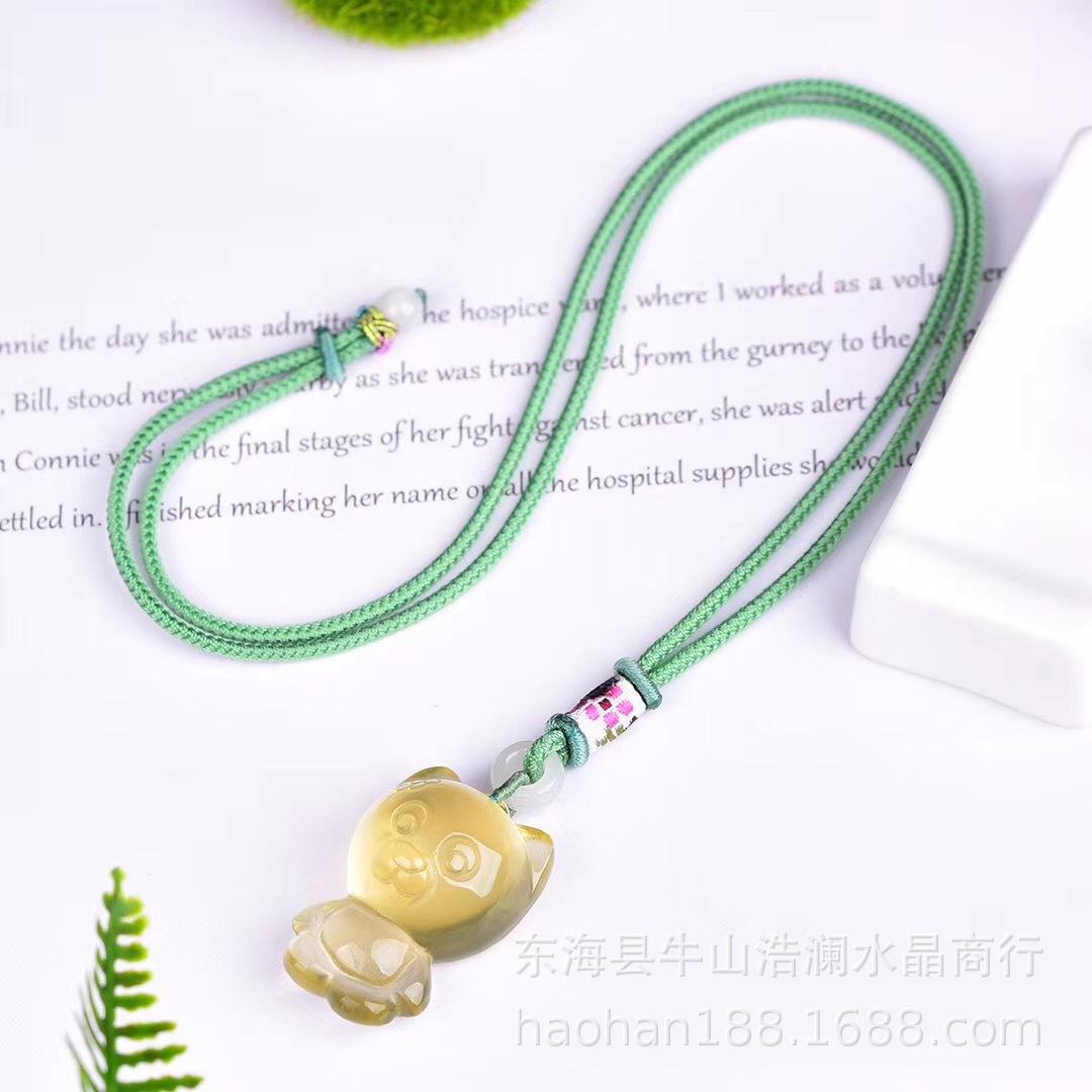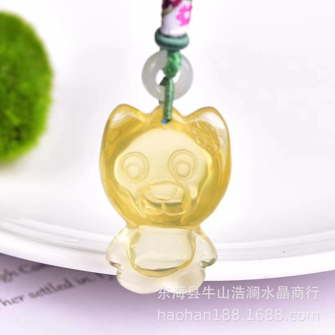 Collar con colgante de oso de citrino natural de cristal Haolan, venta al por mayor, color amarillo, grabado, exquisita cadena de lana para mujer.