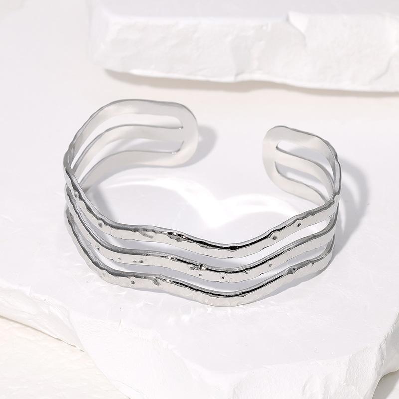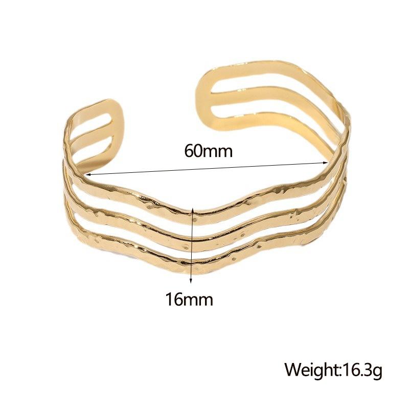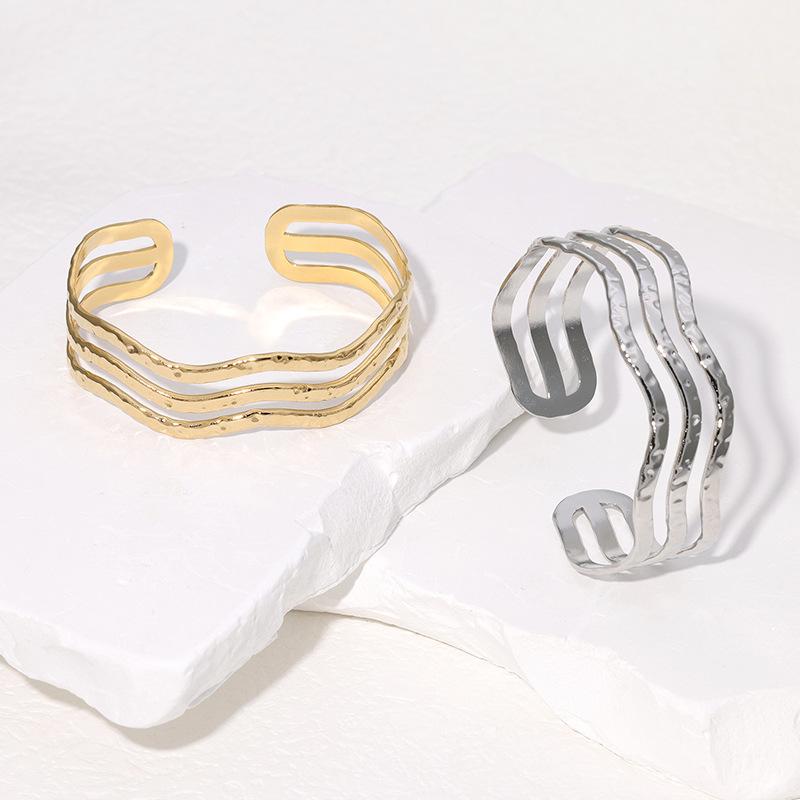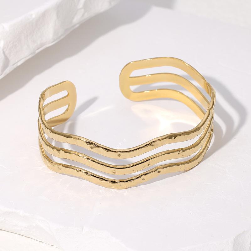 Moda Europea y Americana Pulsera de Acero Inoxidable Apertura Pulsera Ondulada Simple Chapada en Oro de 18K Estilo Frío Pulsera de Acero de Titanio para Mujer