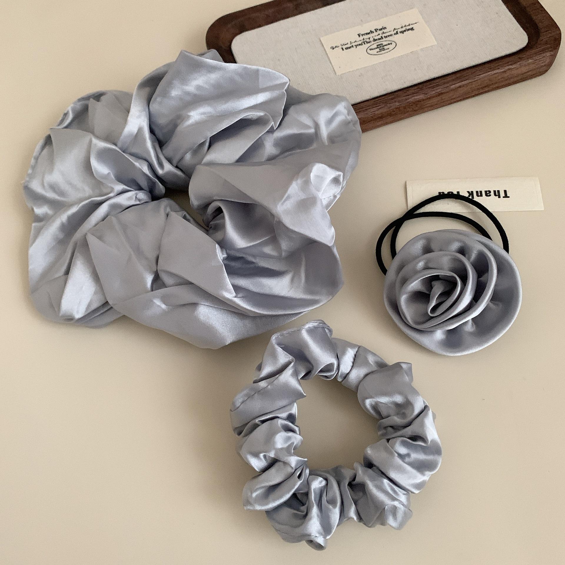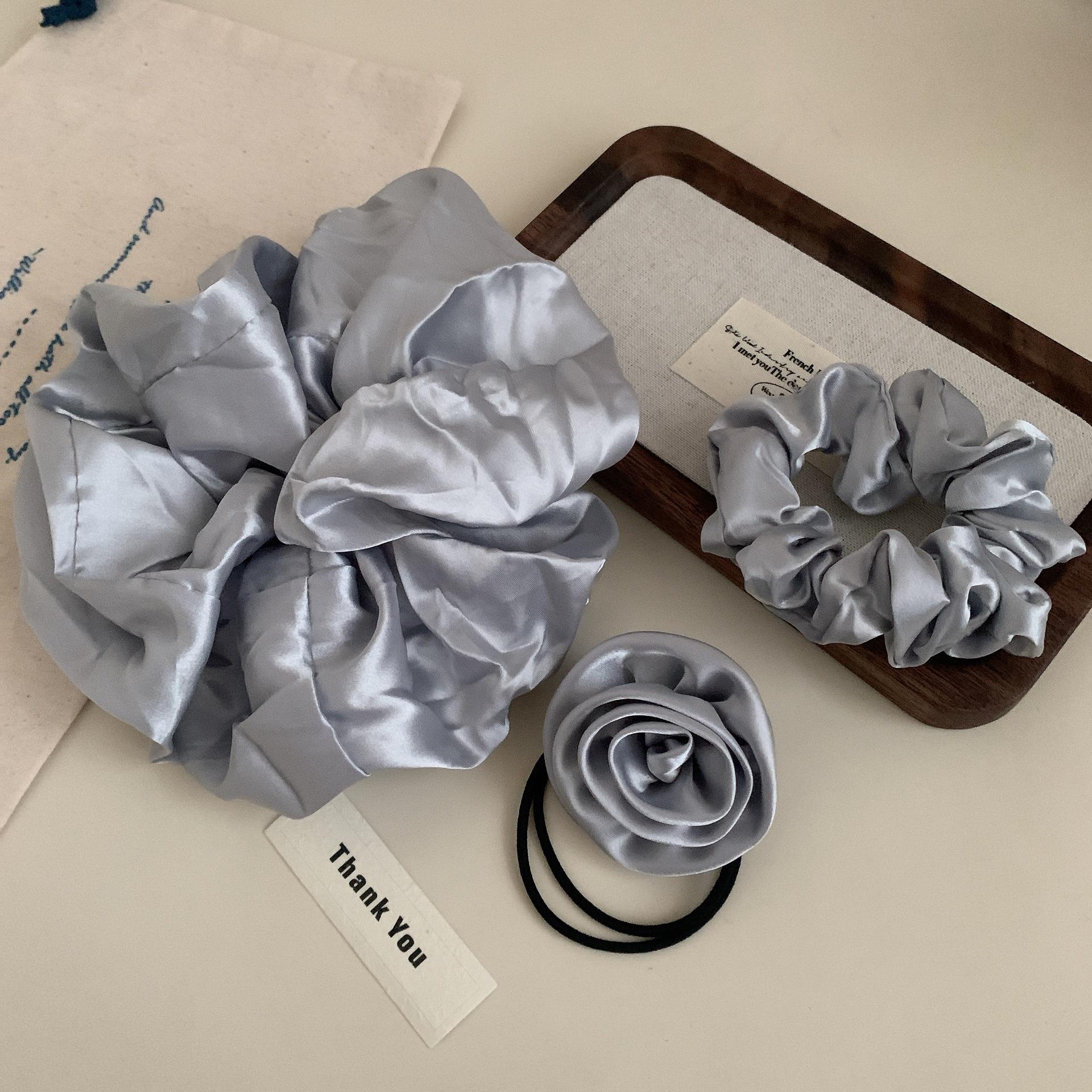 Anillo para el cabello de satén con textura de color sólido, simple y dulce, para el intestino grueso, accesorios para el cabello de alta gama, cordón para el cabello, tocado, nuevo estilo