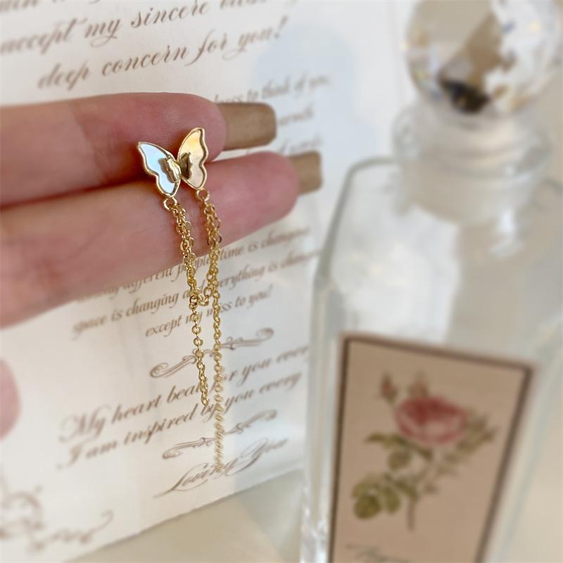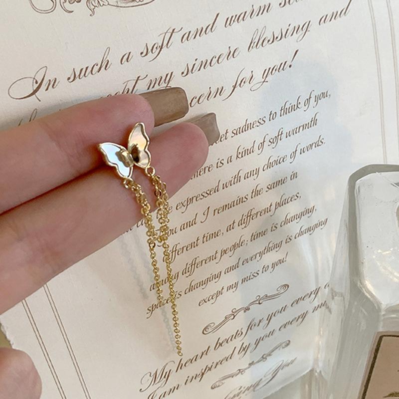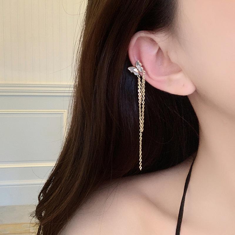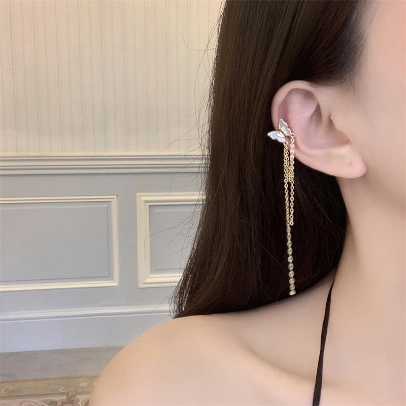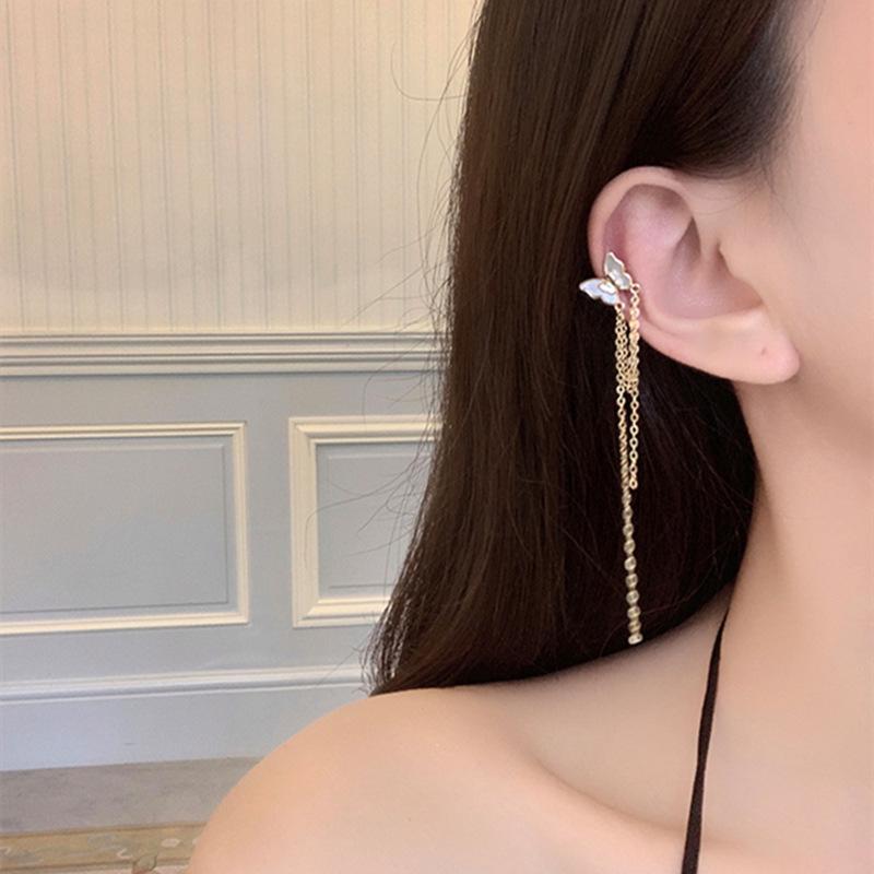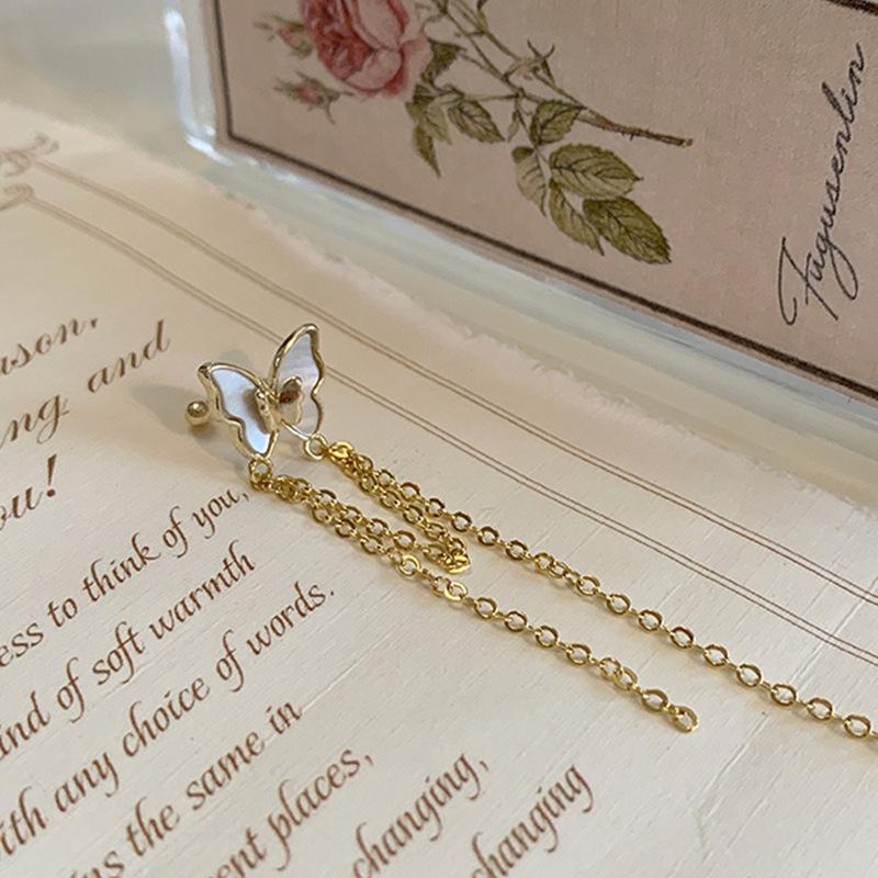 Clip para oreja con borla de mariposa blanca francesa, diseño de nicho avanzado, sin oreja, novedad de 2022