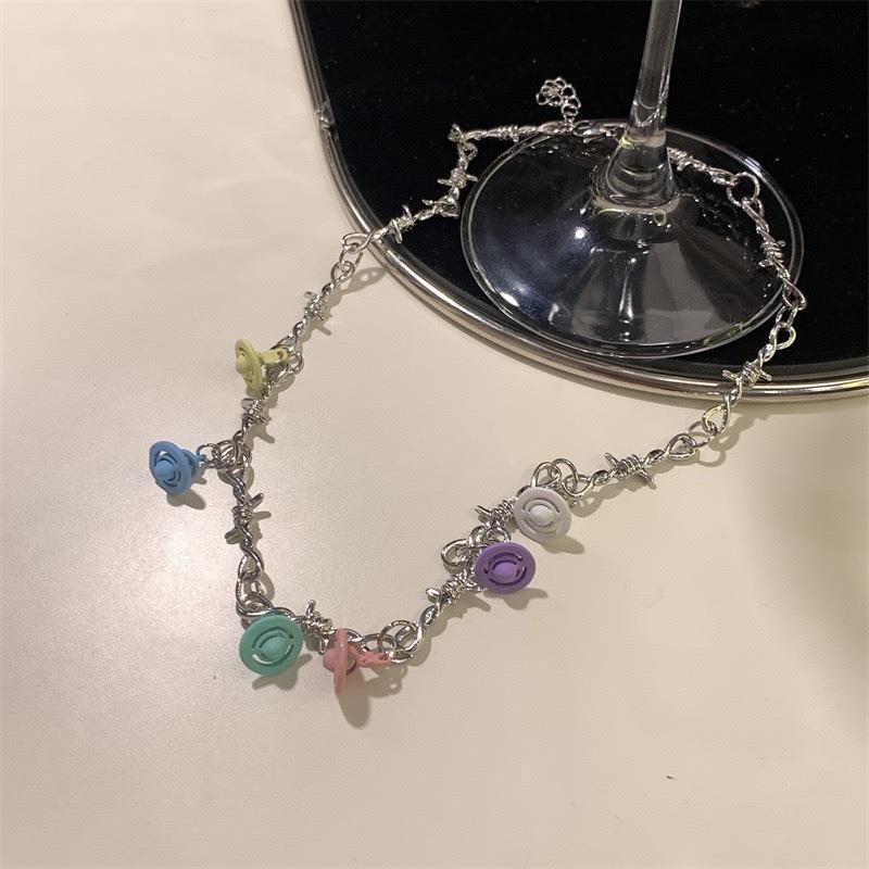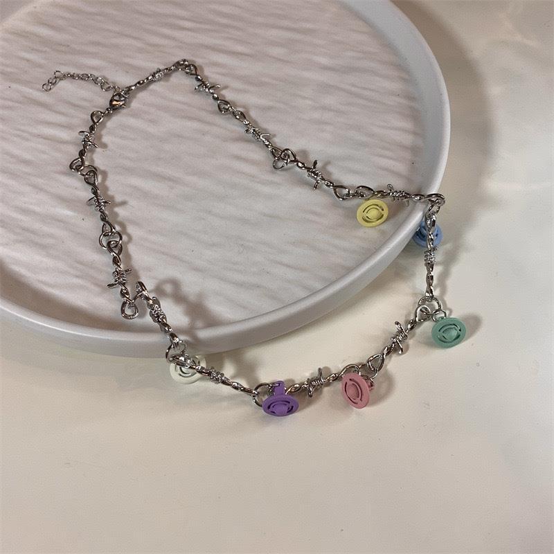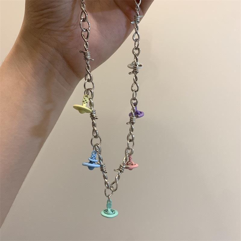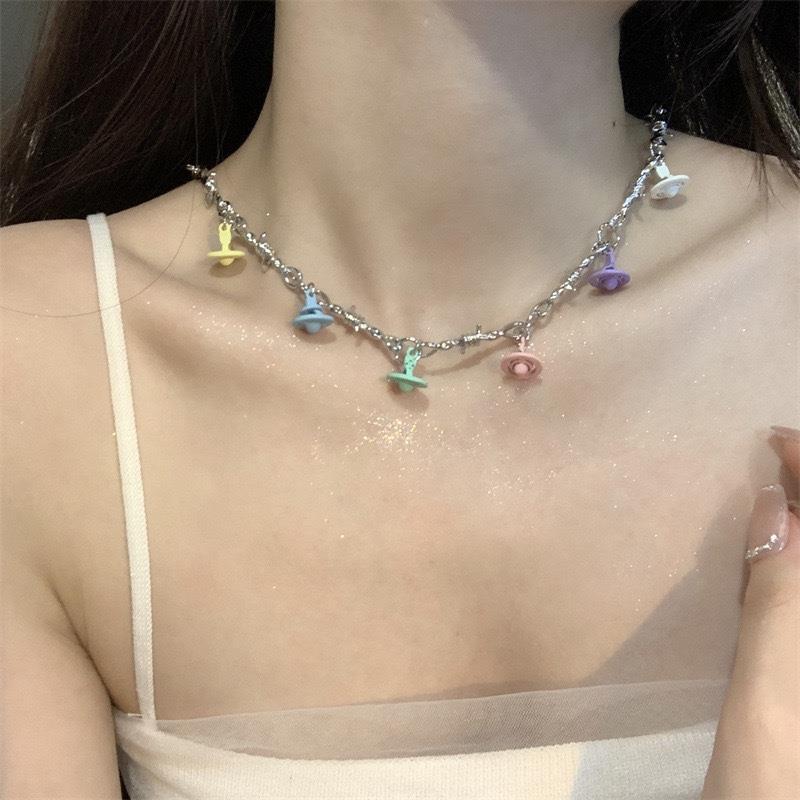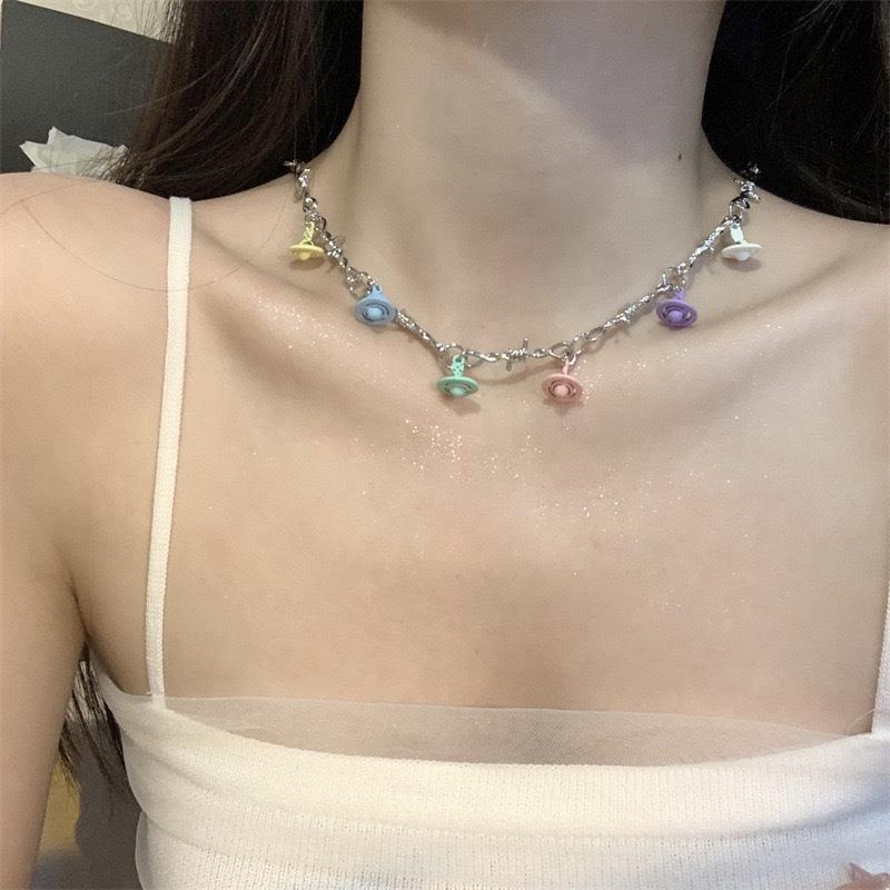 Dongju dulce estilo fresco colorido goteo aceite Saturno collar 2023 nuevo femenino ins hip hop clavícula cadena pequeña fresca