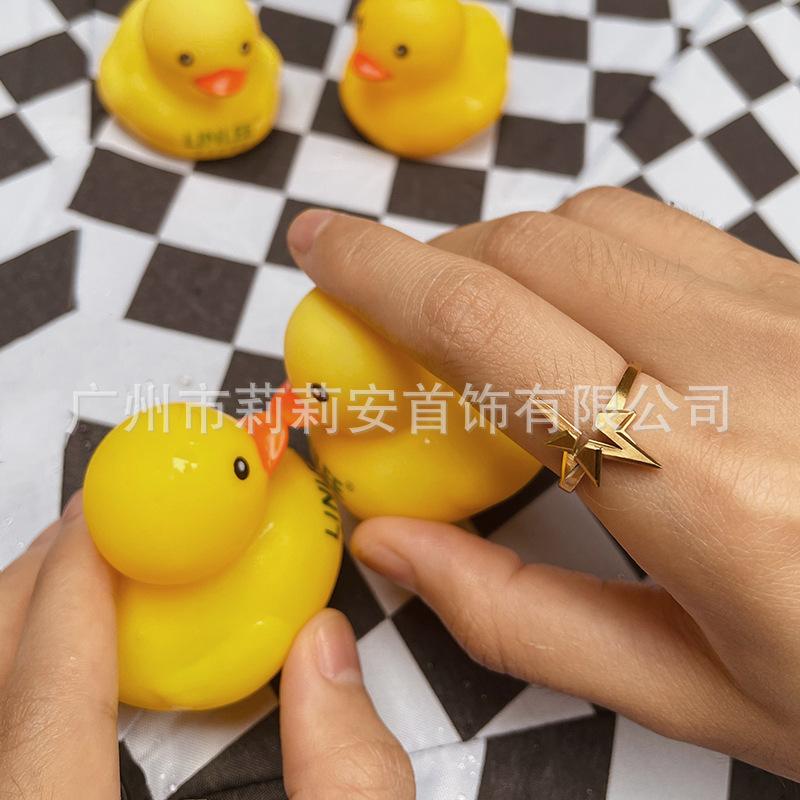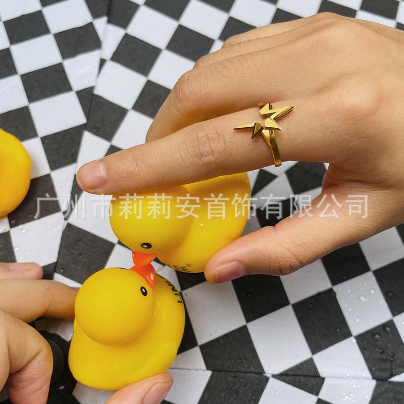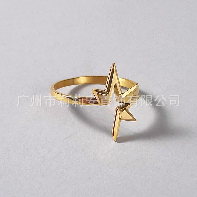 Anillo de cinco puntas irregulares de diseño original en acero de titanio y oro de 18 quilates con personalidad sencilla, estilo INS R224162