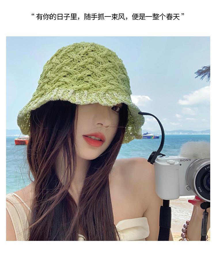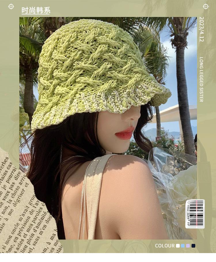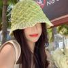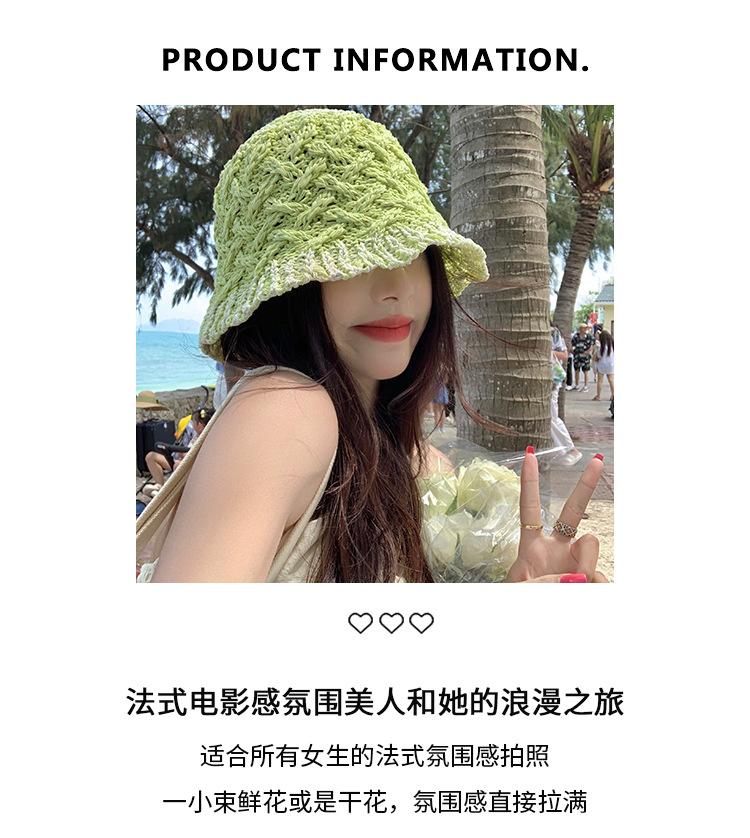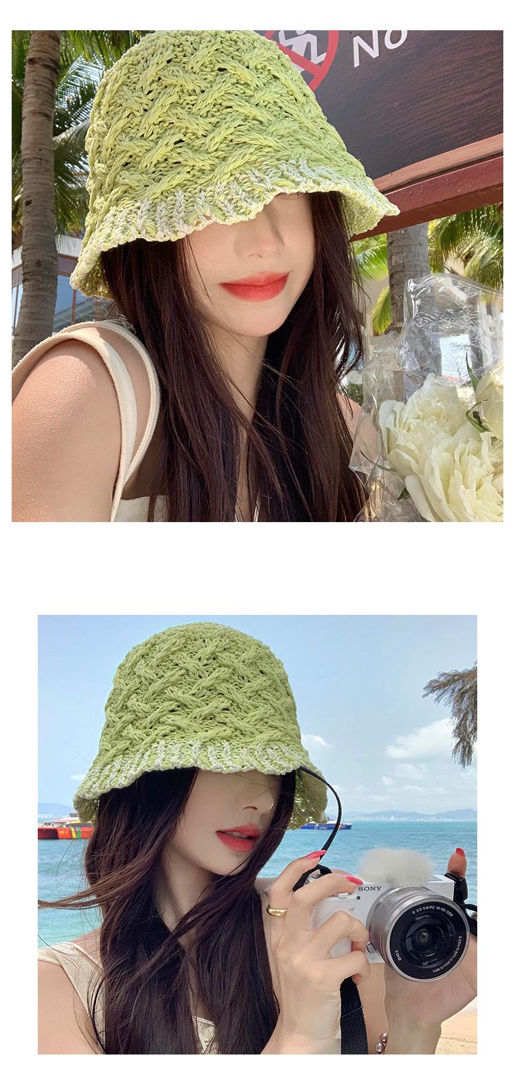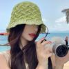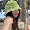 Sombrero de pescador de paja hueca para mujer, transpirable, de verano, protector solar, con cara visible, pequeño, de cabeza grande, color verde, a la moda.
