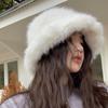 Sombrero de cubo de otoño e invierno para mujer imitación piel de conejo cara pequeña cálido color sólido combinable sombrero redondo de pescador felpa sombrero de estilo coreano tendencia
