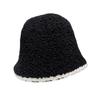 Knitted plush fur bucket hat-black white edge, Knitted Thai Fleece Bucket Hat-White with Black Edge, Knitted t...