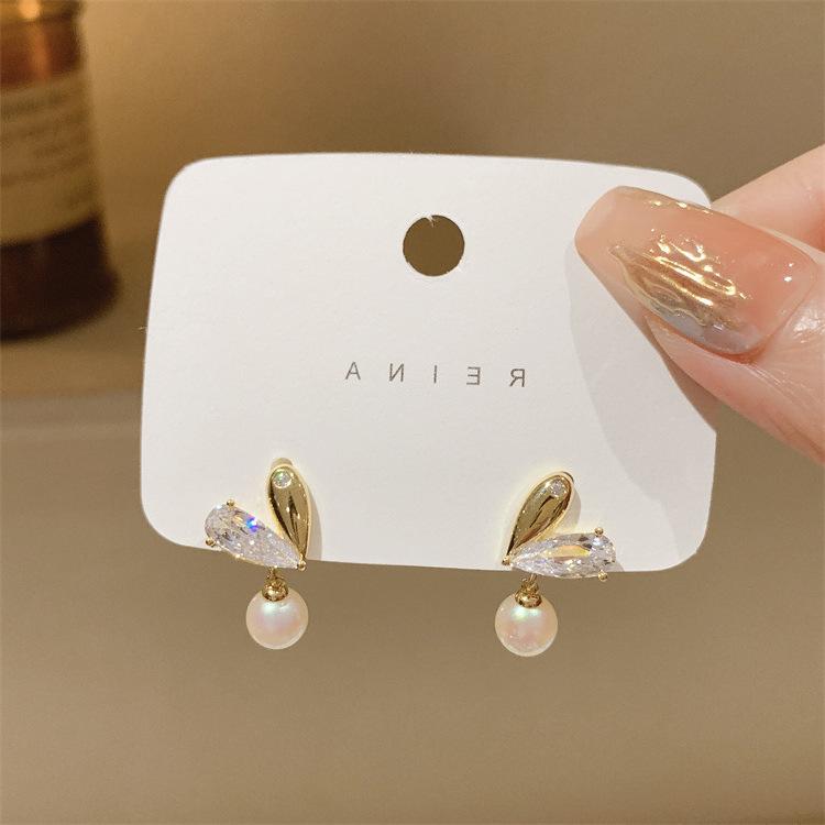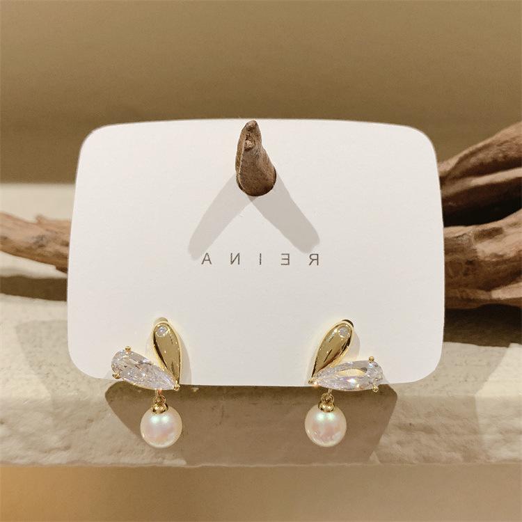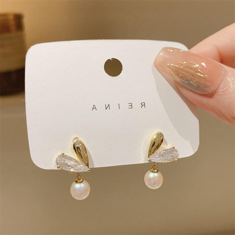 Pendientes de metal con circonitas y perlas para mujer, estilo coreano, retro, personalizados, sencillos, combinables, elegantes, de moda.