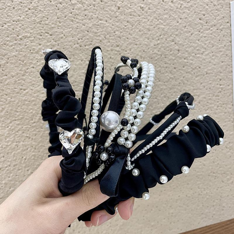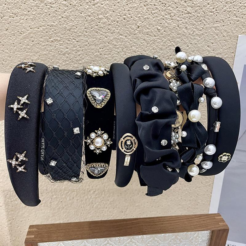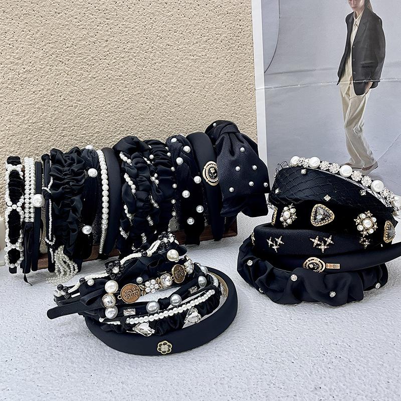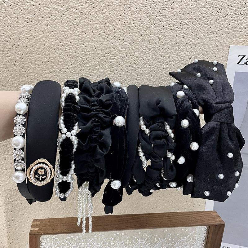 Diadema plisada negra con parte superior de cráneo alto para mujer, horquilla para el cabello, diadema para lavarse la cara, diadema de ala ancha, combina con todo, la famosa diadema de perlas nueva en Internet, accesorio para el cabello