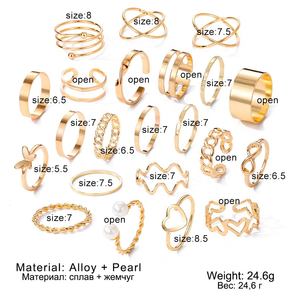 Anillo de Mariposa Transfronterizo de Aleación Ajustable Juego de Anillos Multijunta Juego de 22 Piezas Anillo de Corazón para Mujer con Diseño Único