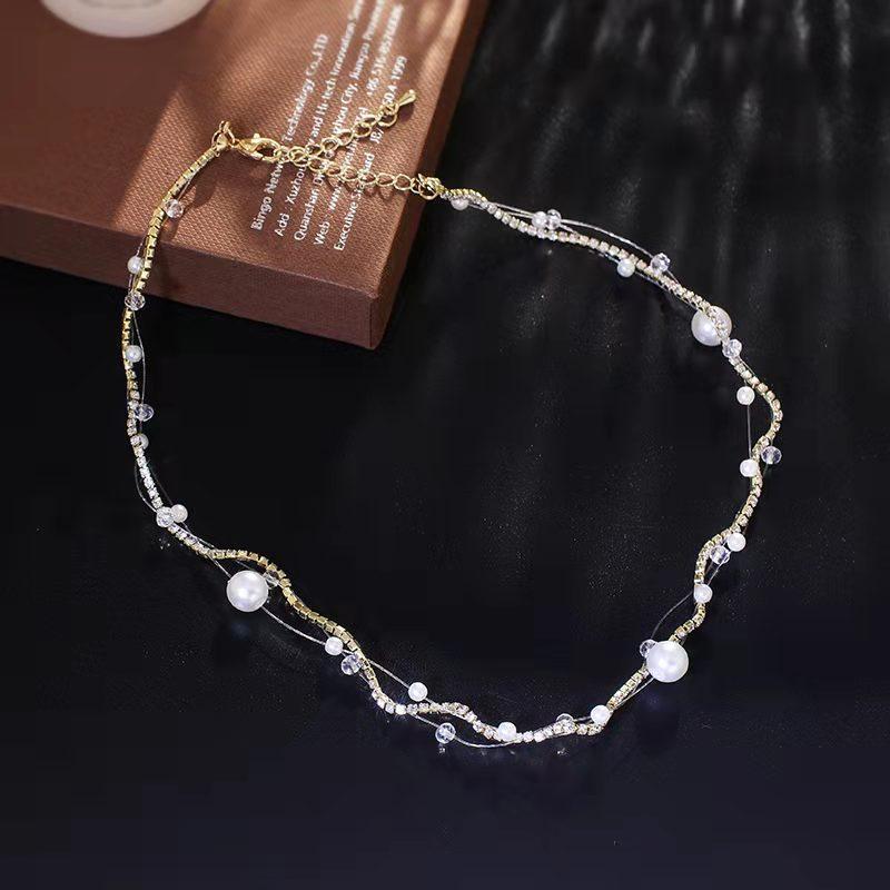 Collar multicapa de perlas de diamante de estilo coreano con diseño de nicho, gargantilla, cadena de clavícula, collar elegante que combina con todo.