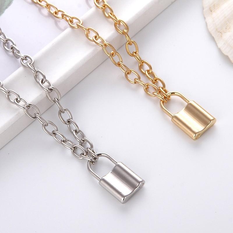Joyería transfronteriza europea y americana, elementos creativos de moda, collar combinable, colgante retro sencillo con candado, nuevo collar para mujer