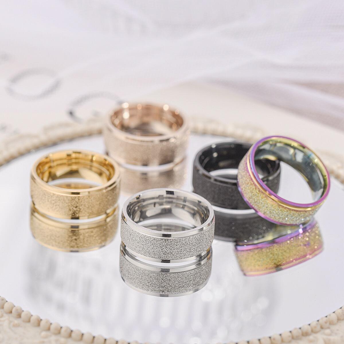 Anillo Popular de Moda Europea y Americana de Acero de Titanio Escarchado para Mujer Anillo Popular Simple Liso Anillo de Pareja Venta al por Mayor de Joyería de Mano Transfronteriza