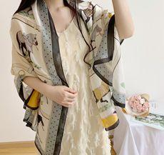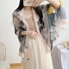 Venta al por mayor Primavera y Verano Bufanda Estola Estampada Doble uso Toalla de Playa Náutica Gasa Satén Vacaciones junto al Mar Viaje Bufanda Mujer