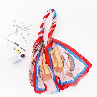 Bufanda de seda transfronteriza de comercio exterior para mujer, versátil, con cadena, color rosa, de imitación de seda, para mujer, con protector solar, para playa, toalla, chal de viaje