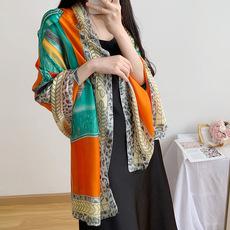 Toalla de playa de satén de gran tamaño de marca europea y americana 2018, chal de vacaciones, bufanda de seda de viaje con protector solar de doble propósito para mujer junto al mar