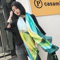 Versión mejorada de 2018 de bufanda de seda de color degradado de alta calidad suave, bufanda de primavera y otoño, bufanda larga, chal de vestir, bufanda femenina