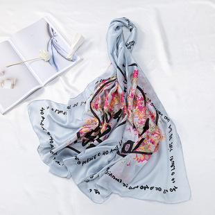 Bufanda de seda de gato 2018, bufanda larga de gasa para primavera y otoño, chal de aire acondicionado para mujer, bufanda de seda morera de satén pesado de color sólido de verano