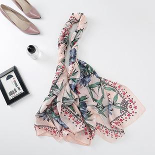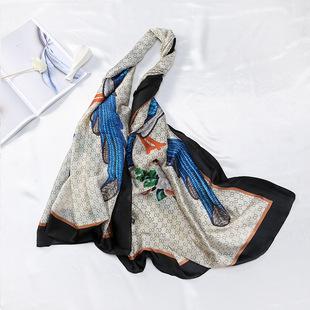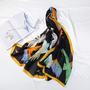 Bufanda de primavera y verano de estilo europeo y americano con estampado de pájaros de colores clásicos, fina bufanda de seda, chal de protección solar de verano de doble propósito.